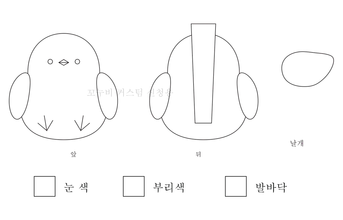 1. 오목눈이 기본 디자인은 3mm 원단 - 흰색 / 검정으로 제작 했습니다.