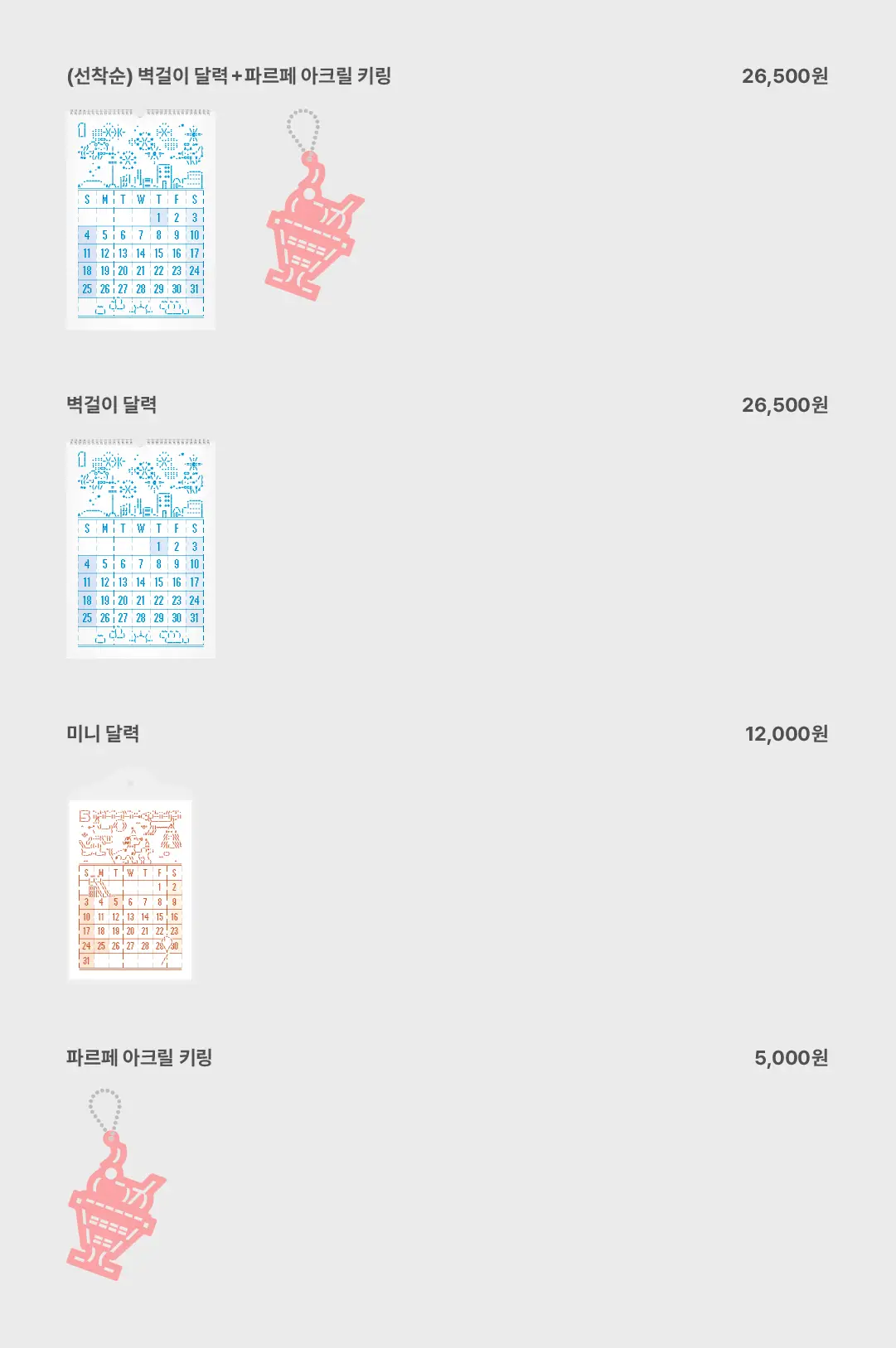 🩷 벽걸이 달력 구매 선착순 20명 특전: 파르페 아크릴 키링 증정 🩷