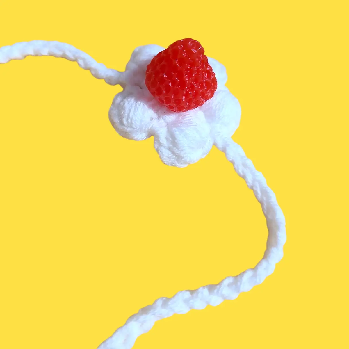 폭신폭신한 케이크 위에 뜨개 생크림과 레진 과일들이 올라가 있어요!