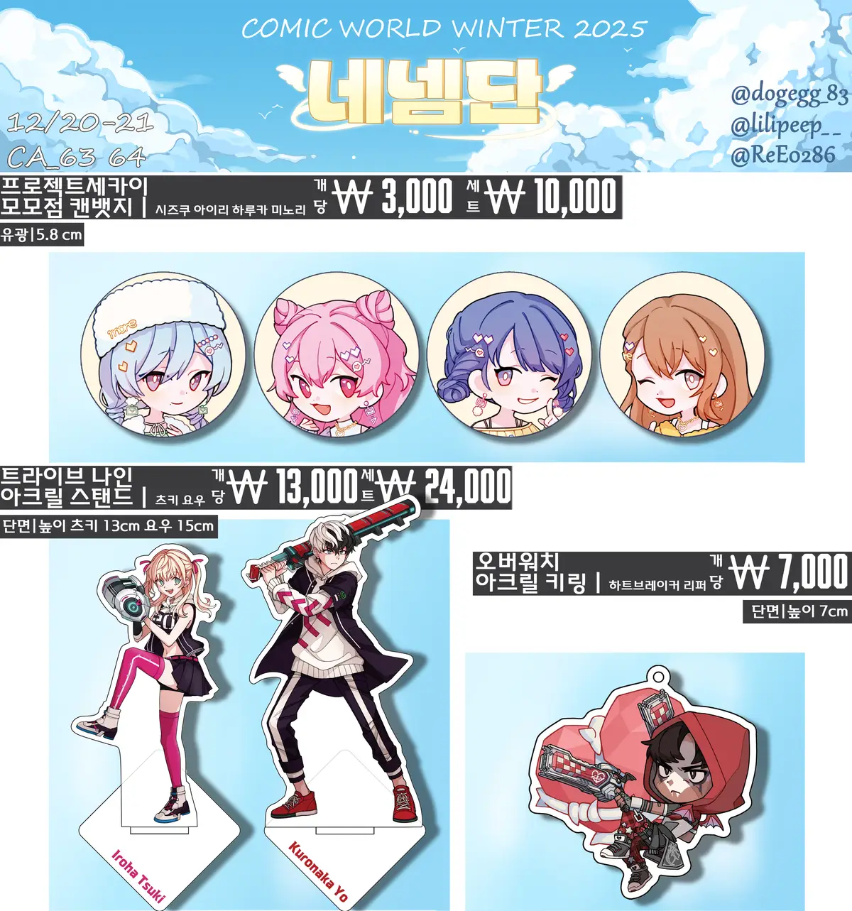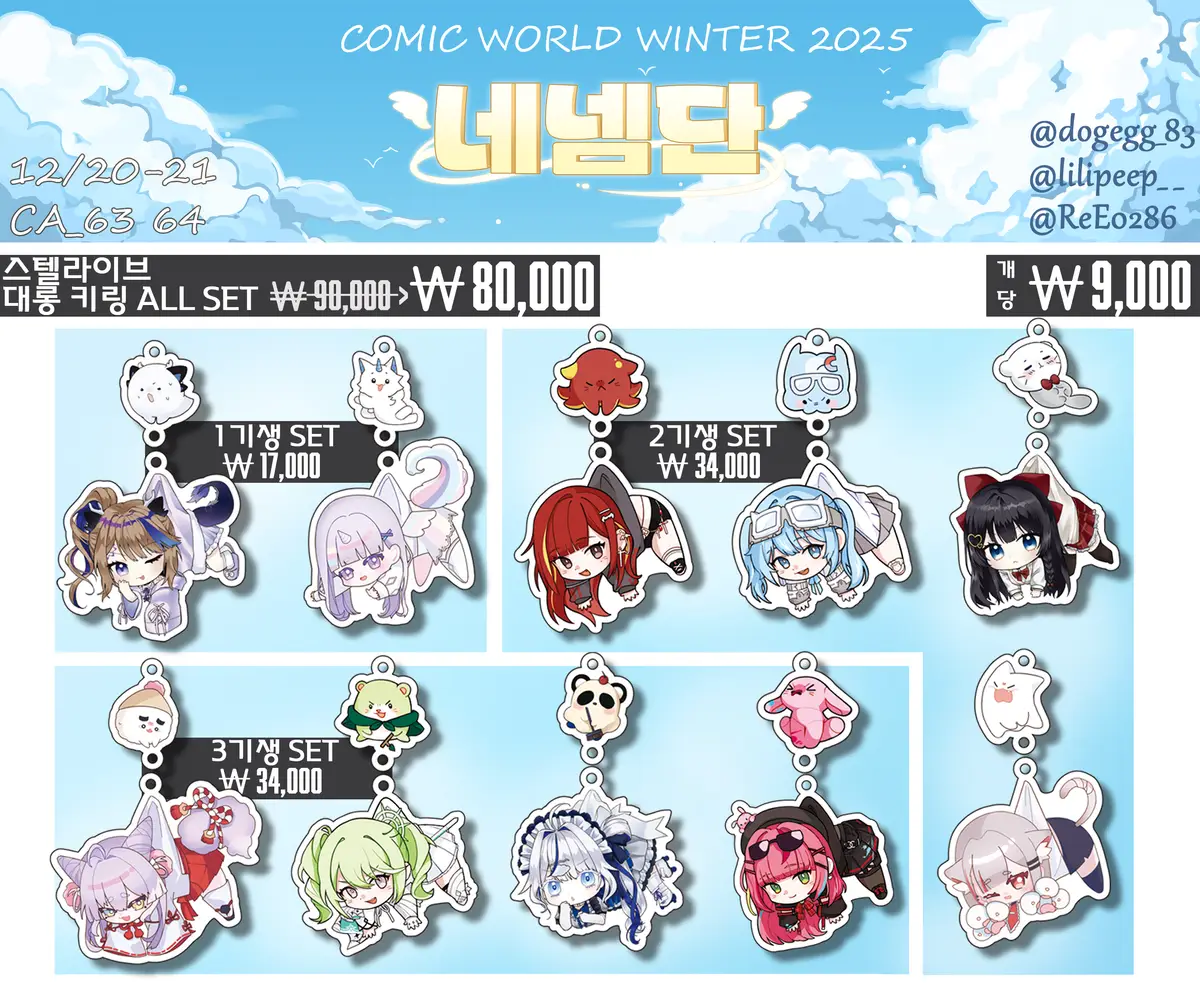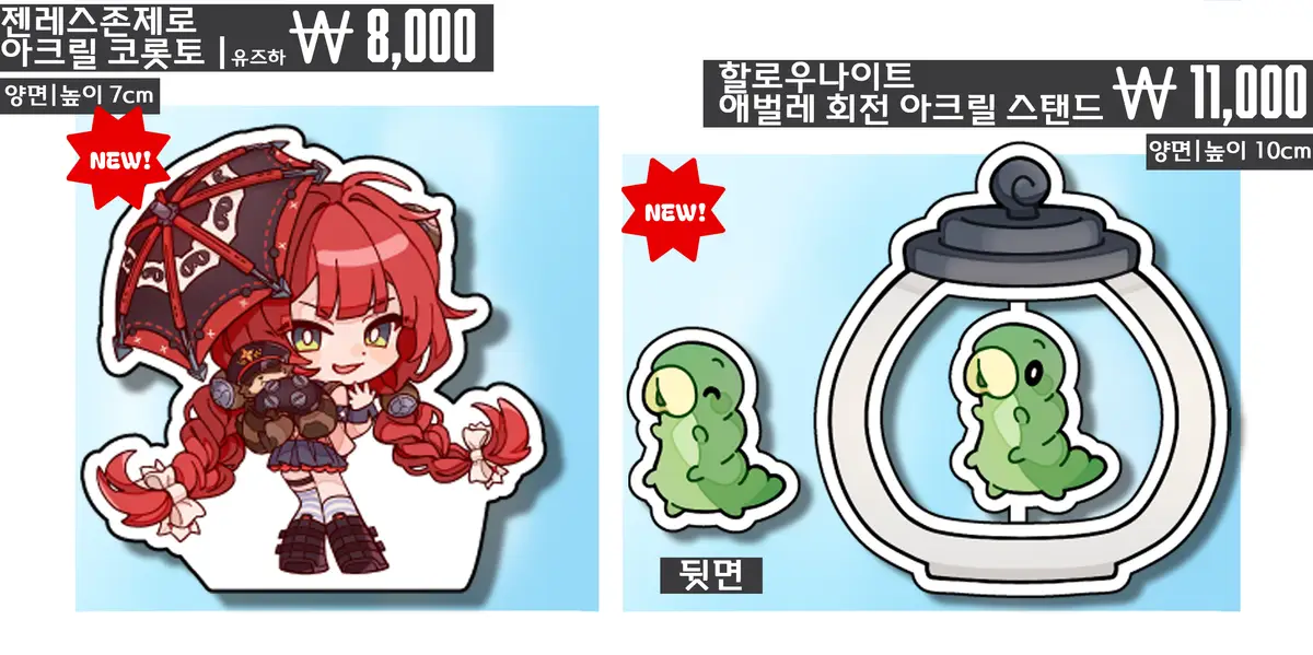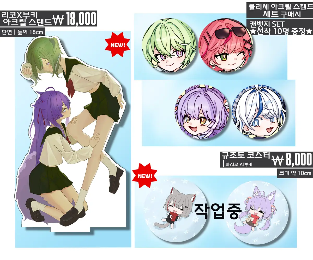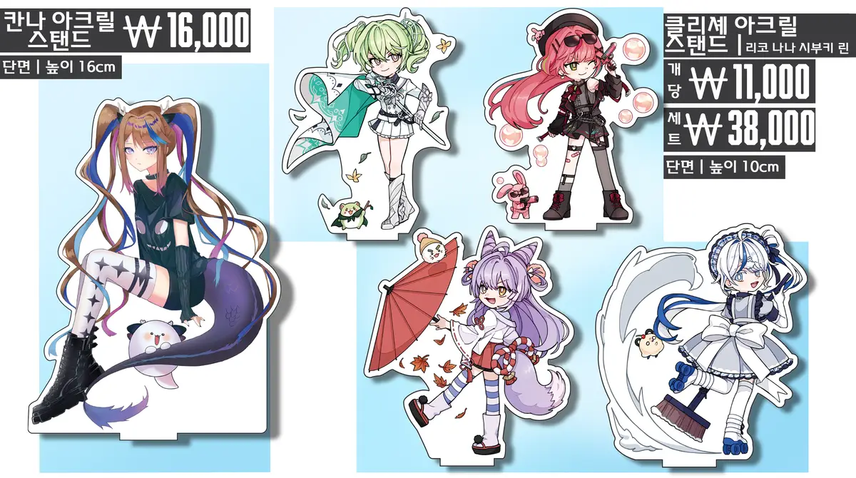 *스텔라이브 규조토 코스터, 젠존제 코롯토, 할나 회전 아크릴스탠드는 부득이하게 현장판매로만 진행하게 됐습니다.