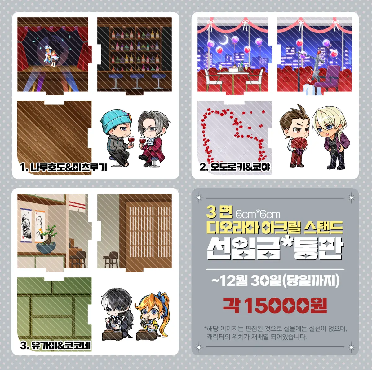 1월 디페 역전재판 쁘띠존- T6 『법정에서 고백하겠습니다』 부스에서 판매할 역전재판 디오라마 아크릴 스탠드의 <현장 수령 선입금/통판 신청>을 받습니다.