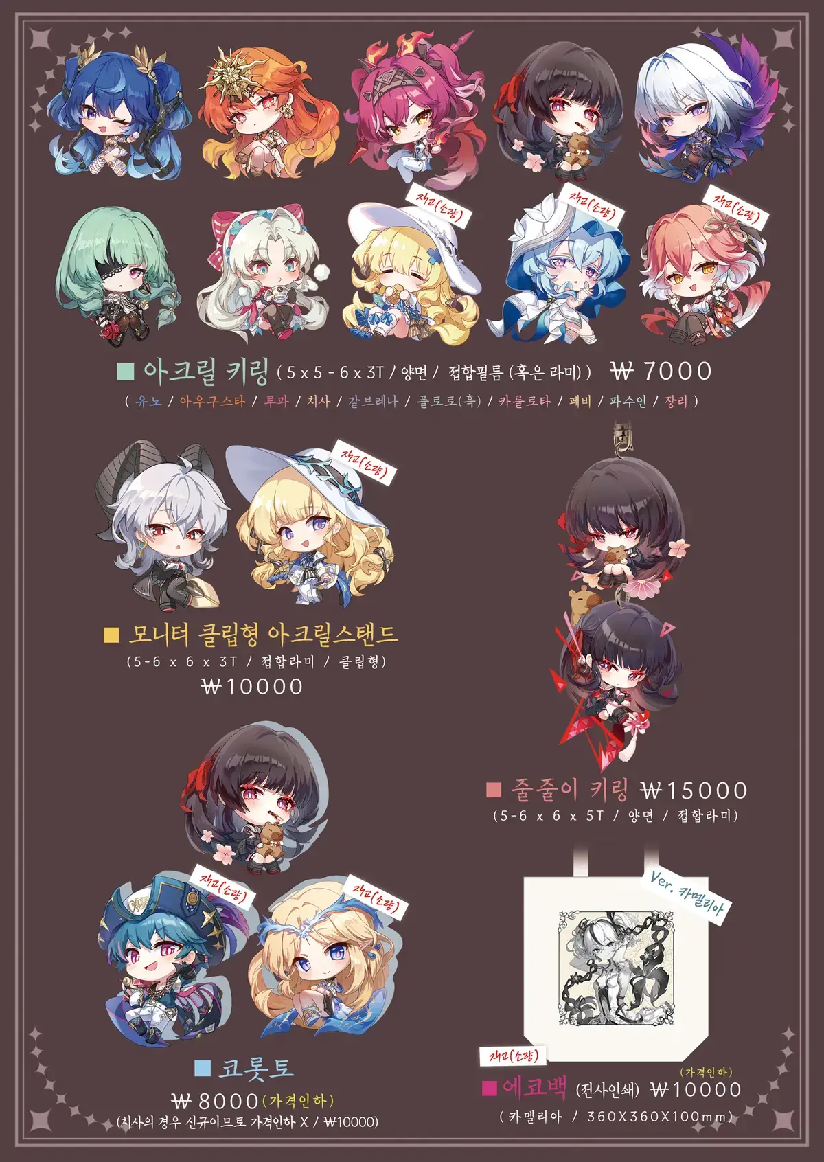 (일부물품 제작비 증가 문제로, 금액과, 품목이 살짝 다릅니다(통판불가 물품은 통판하지않습니다))