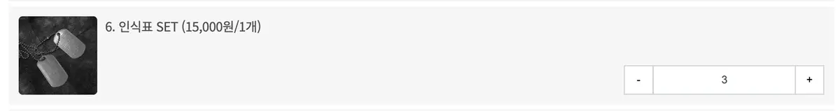 예시) 인식표 3개 구매 시