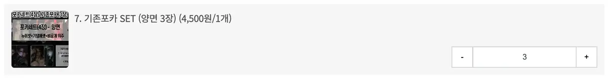 예시) 기존포카 set 3개 구매 시