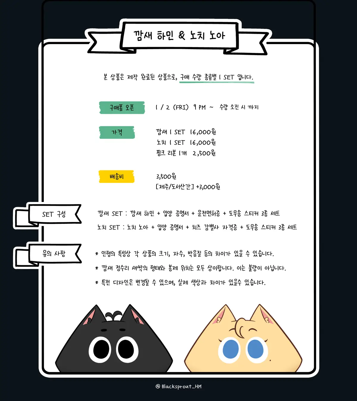 - 제작 진행 상황 및 발송 안내는 X (@Blacksprout_HM) / 윗치폼 공지를 통해 안내드립니다.