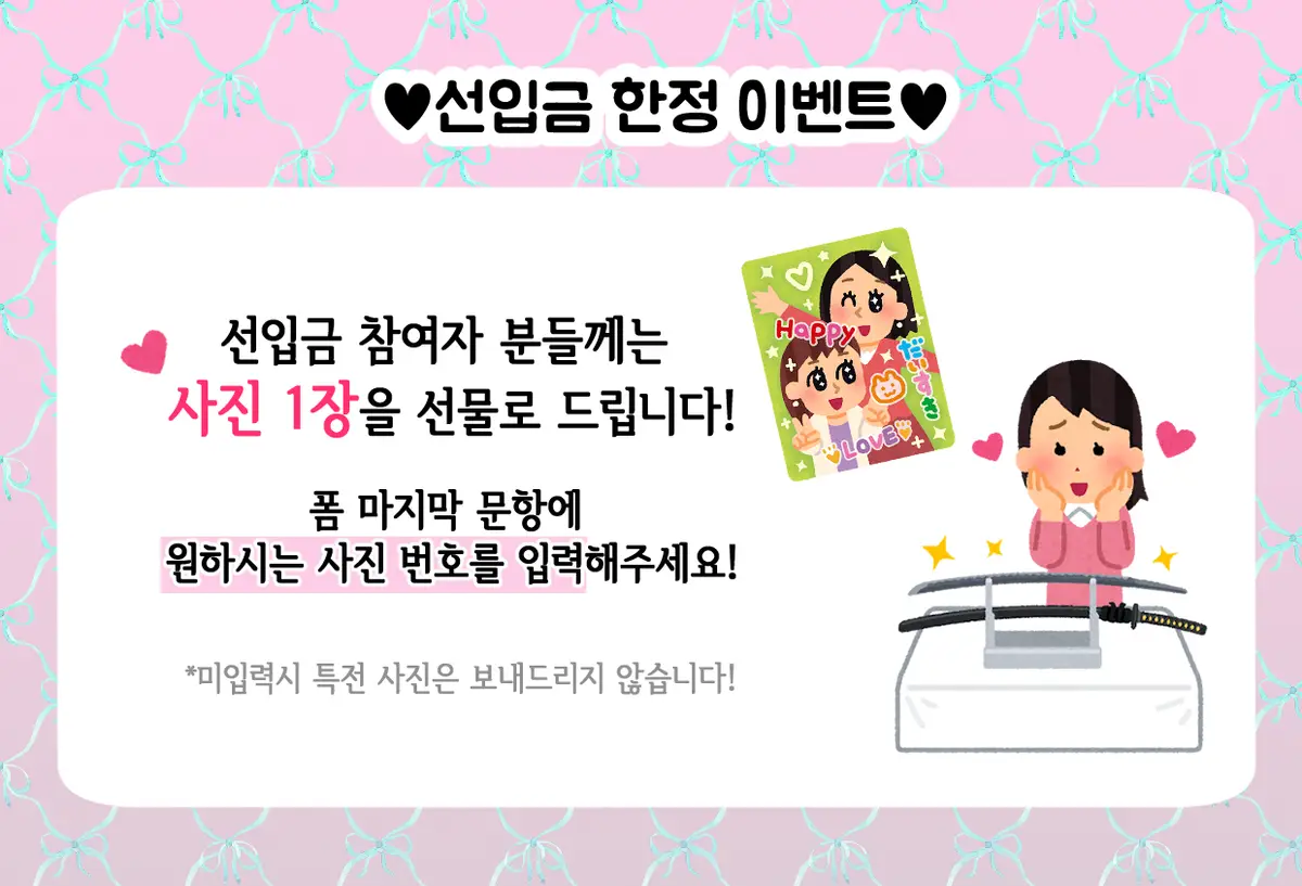 선입금 참여자 한정으로 사진 1장을 드립니다!