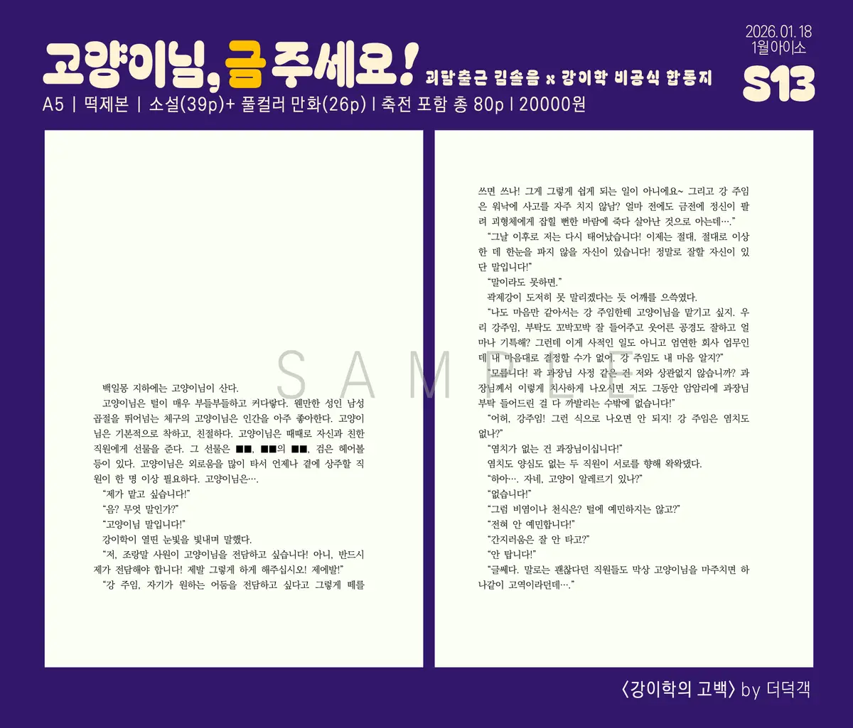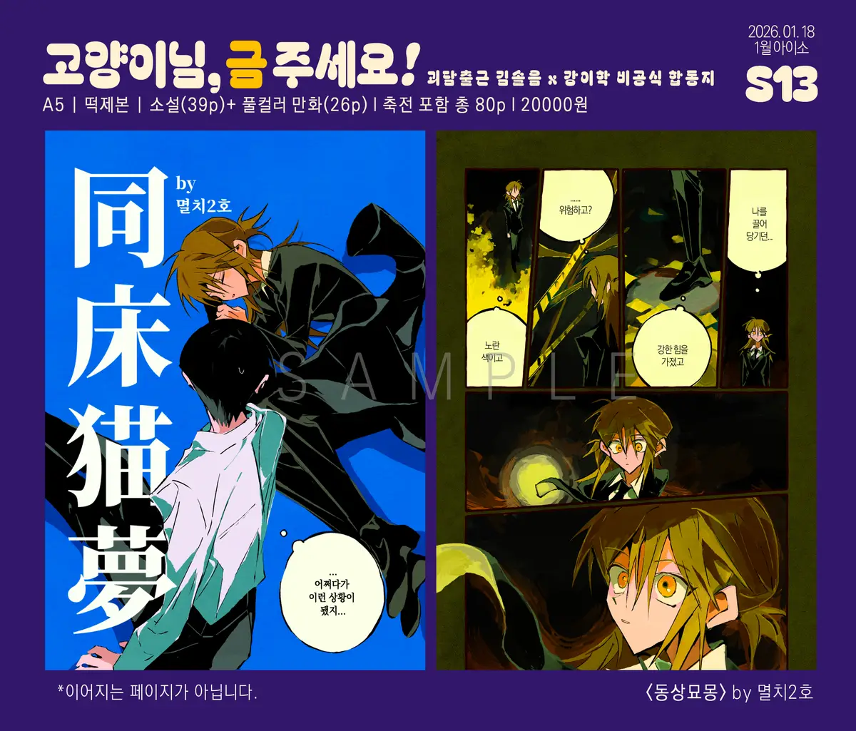 A5 | 떡제본 | 소설(39p)+풀컬러 만화(26p) | 축전 포함 총 80p | 20000원