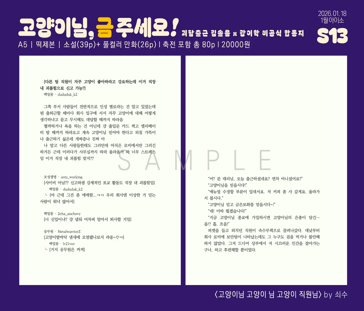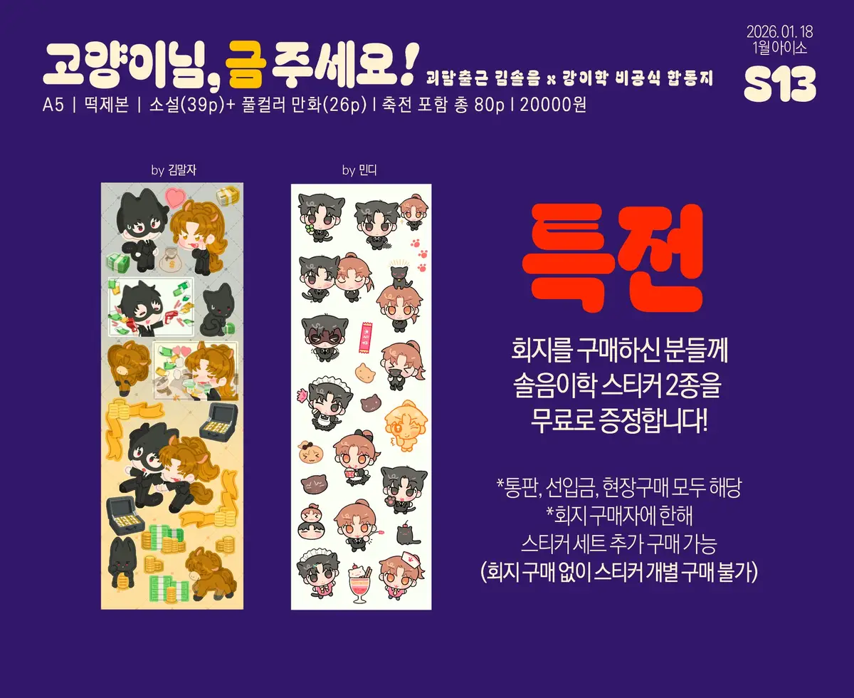 <괴담출근 솔음이학 합동지 ‘고양이님, 금 주세요!’ 1월 아이소 현장수령/통판 폼>
