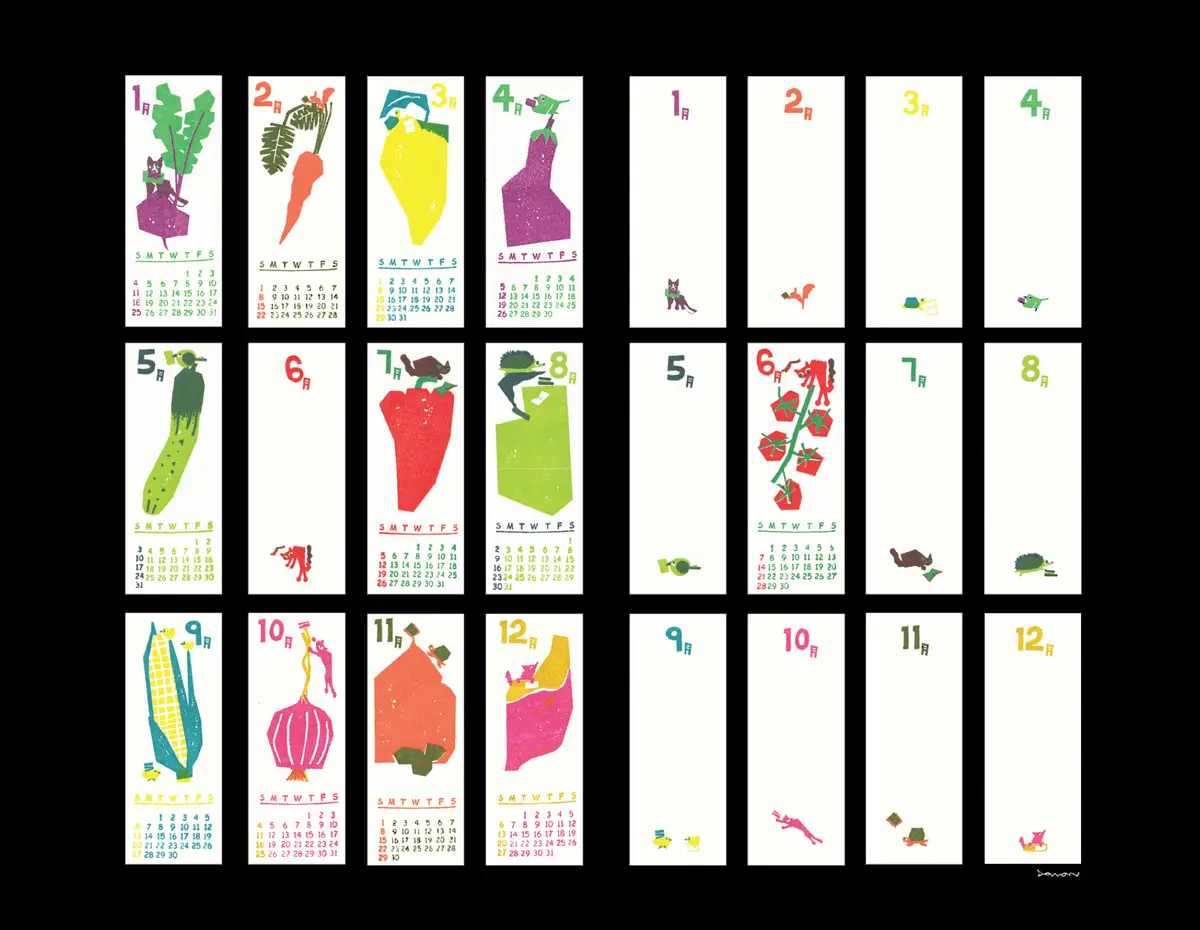 2026년 새로운 네모난 과일-채소, 독서의 계절 책갈피 달력을 준비했습니다.