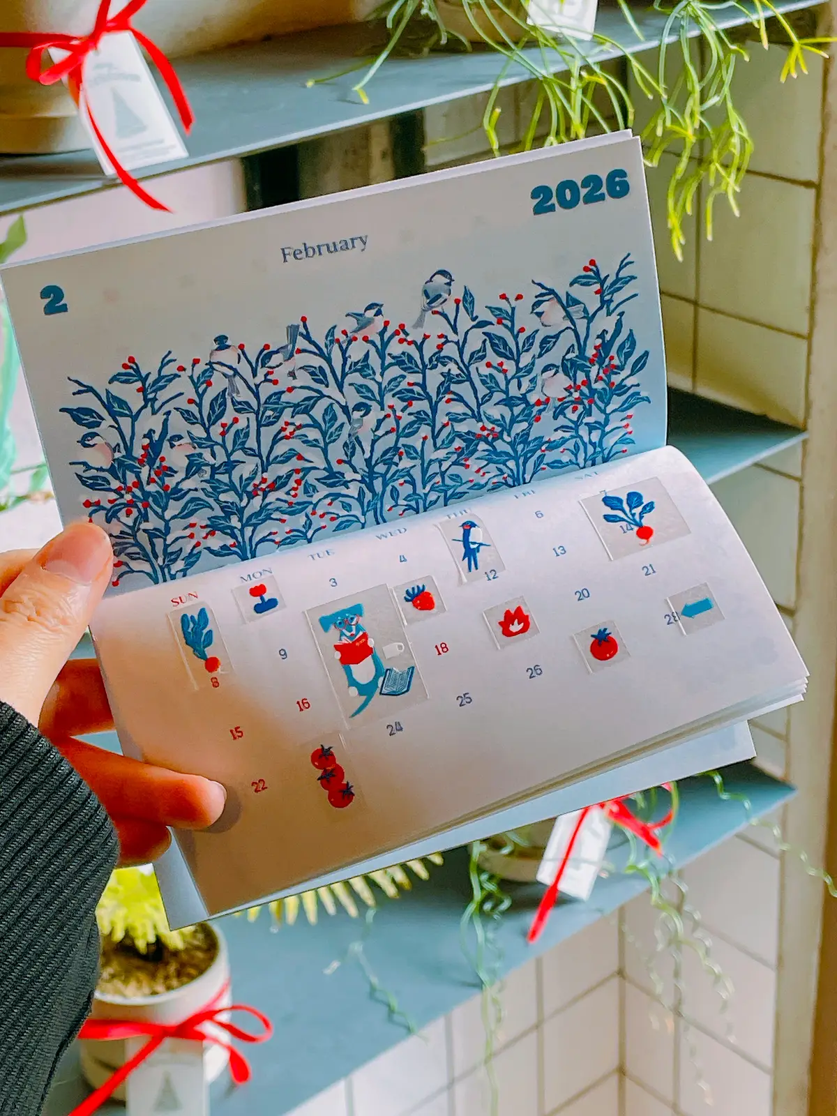 작은 책달력을 한장 한장 펼치면 다양한 새 일러스트와 달력이 보입니다.