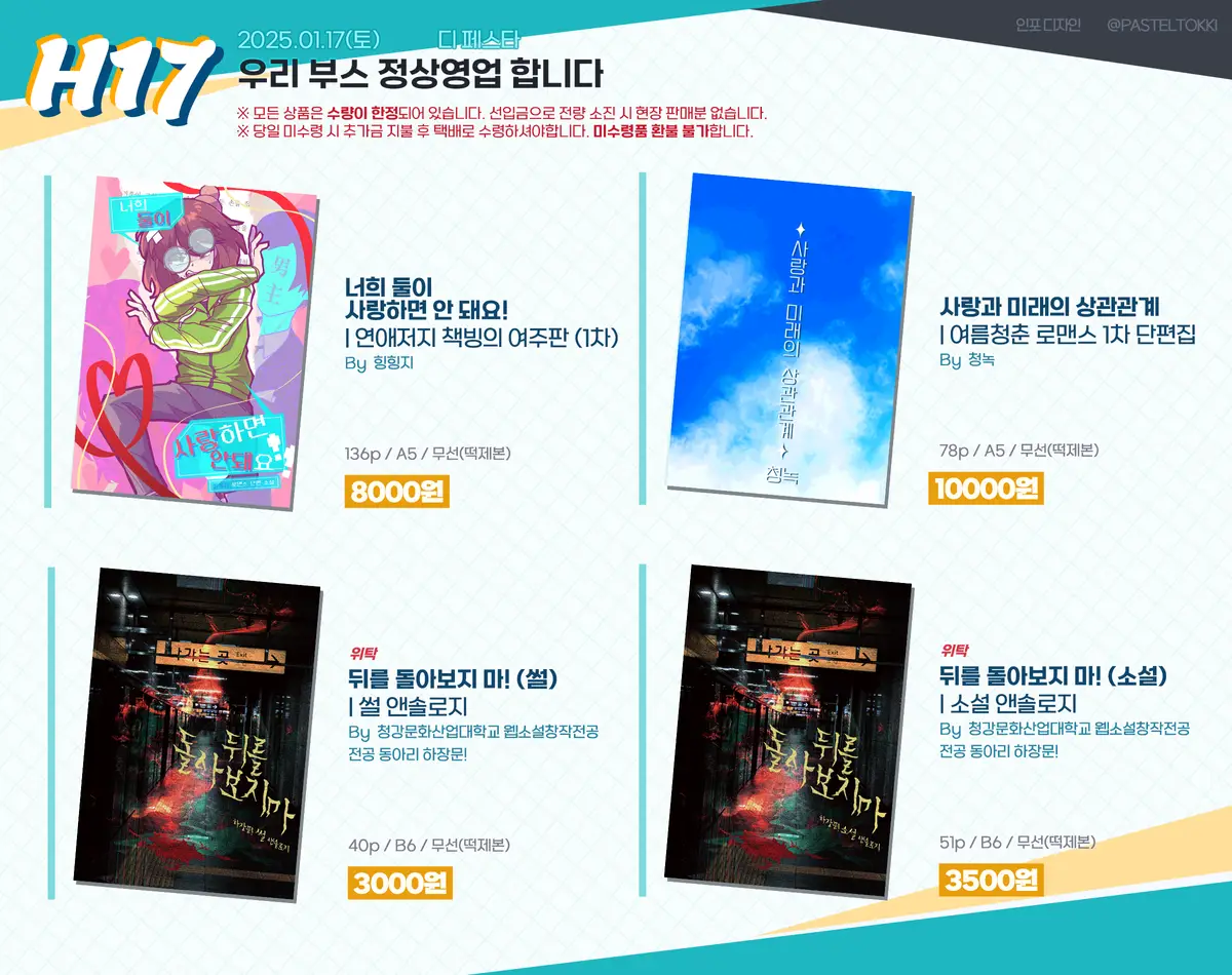 1/17(토) 디페스타 당일 H17 부스에서 수령하실 수 있습니다.