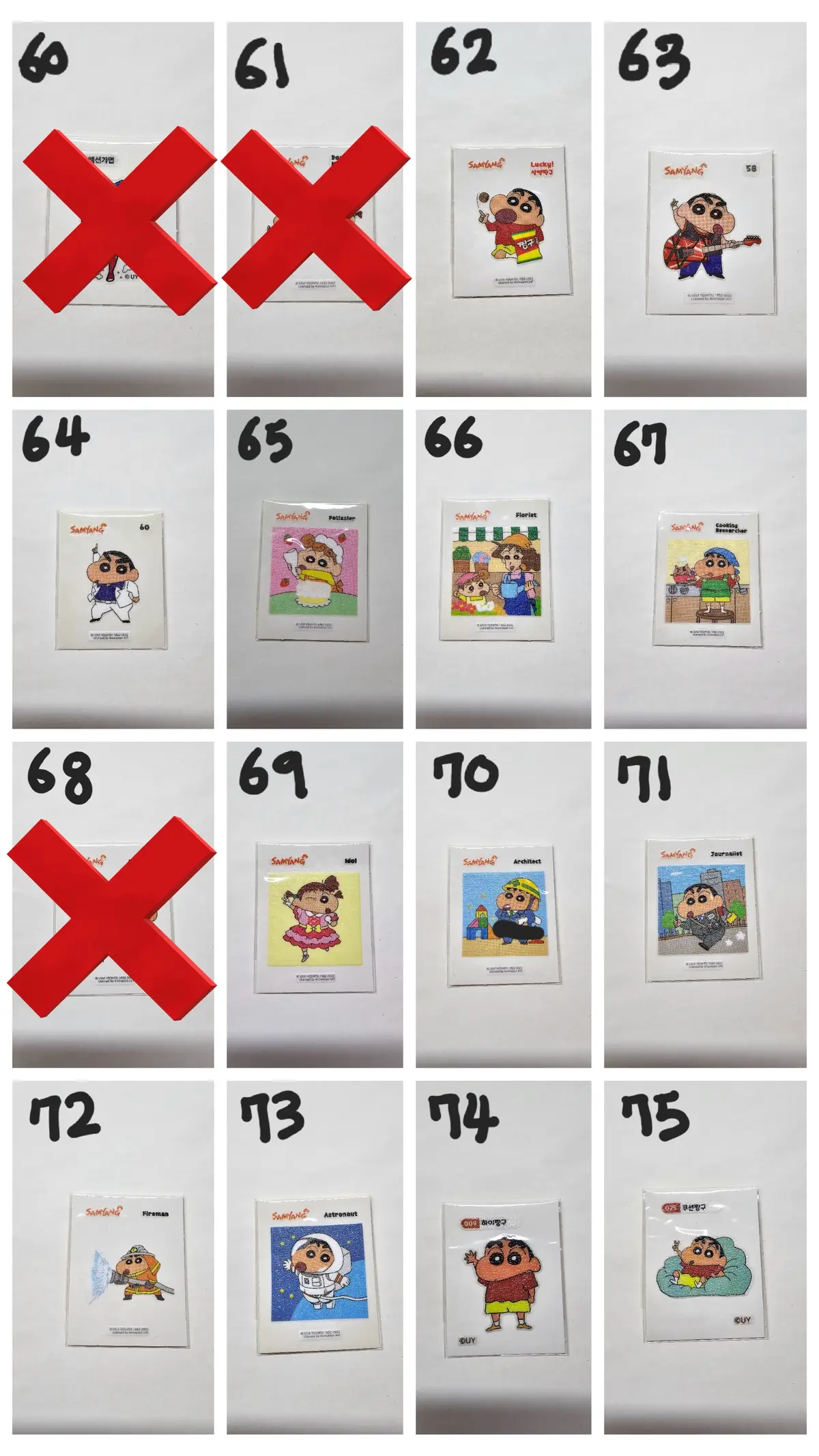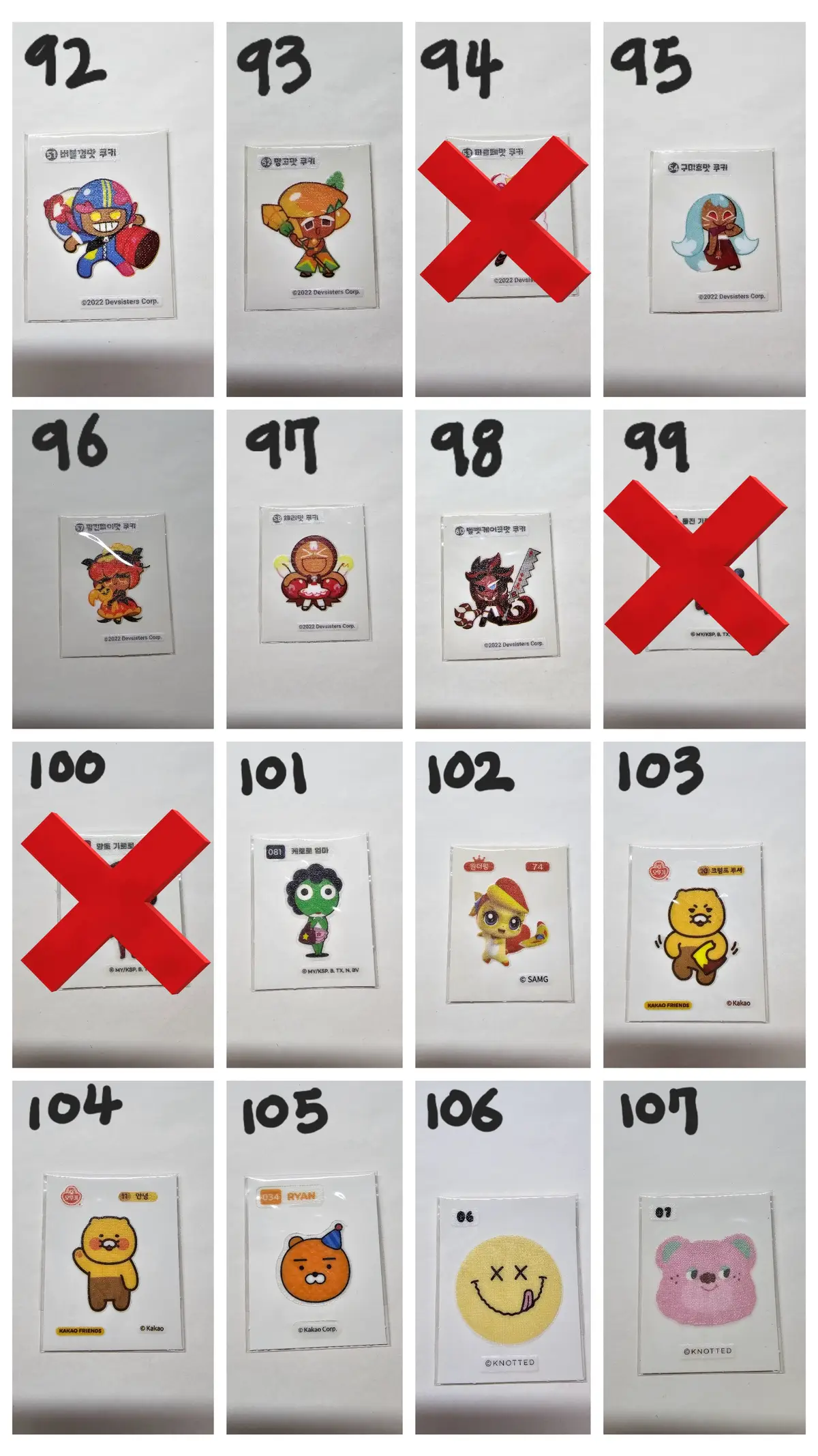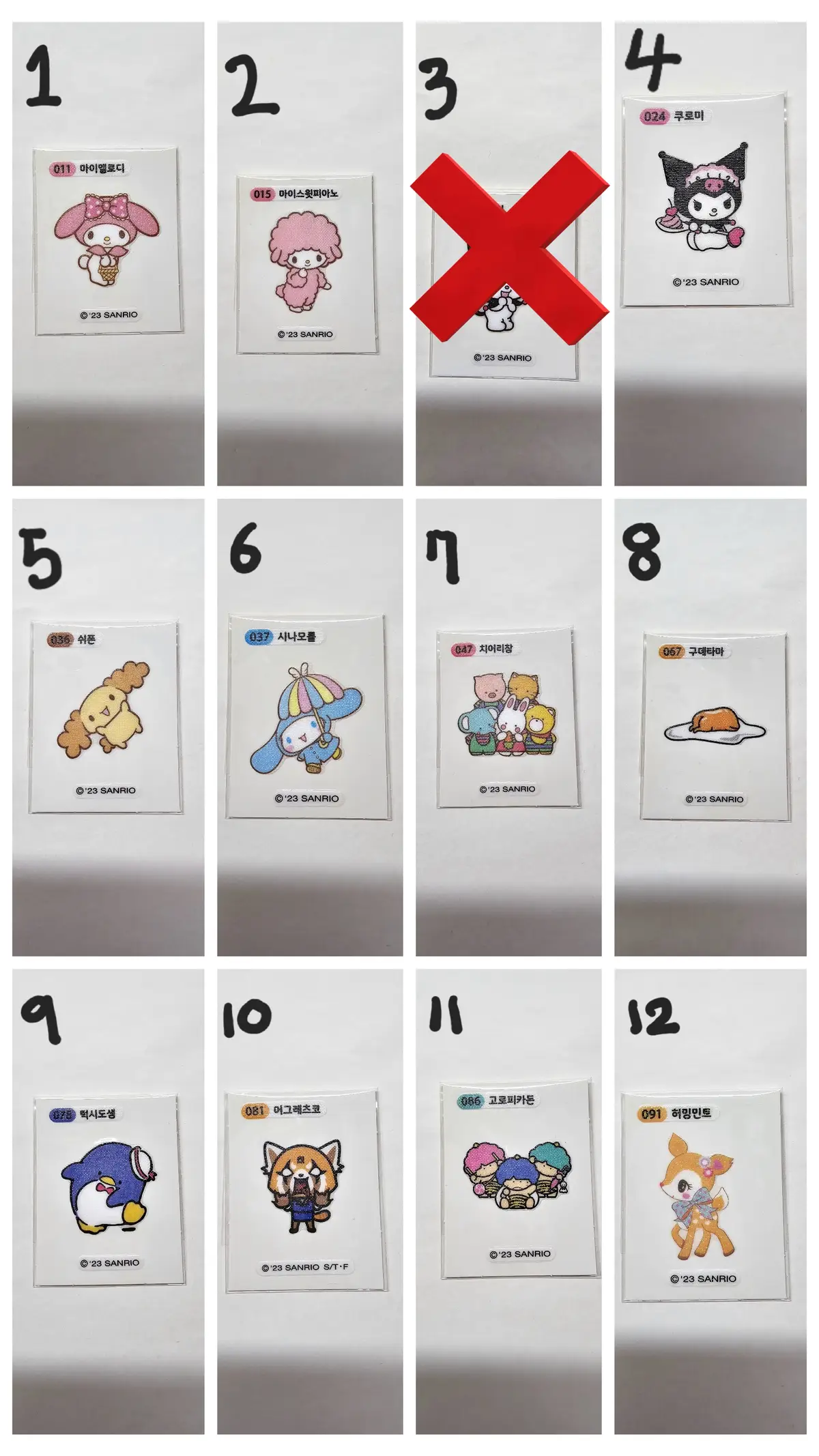 아래에 번호보시고 구매원하시는 띠부씰 번호 선택하셔서 구매해주세요!