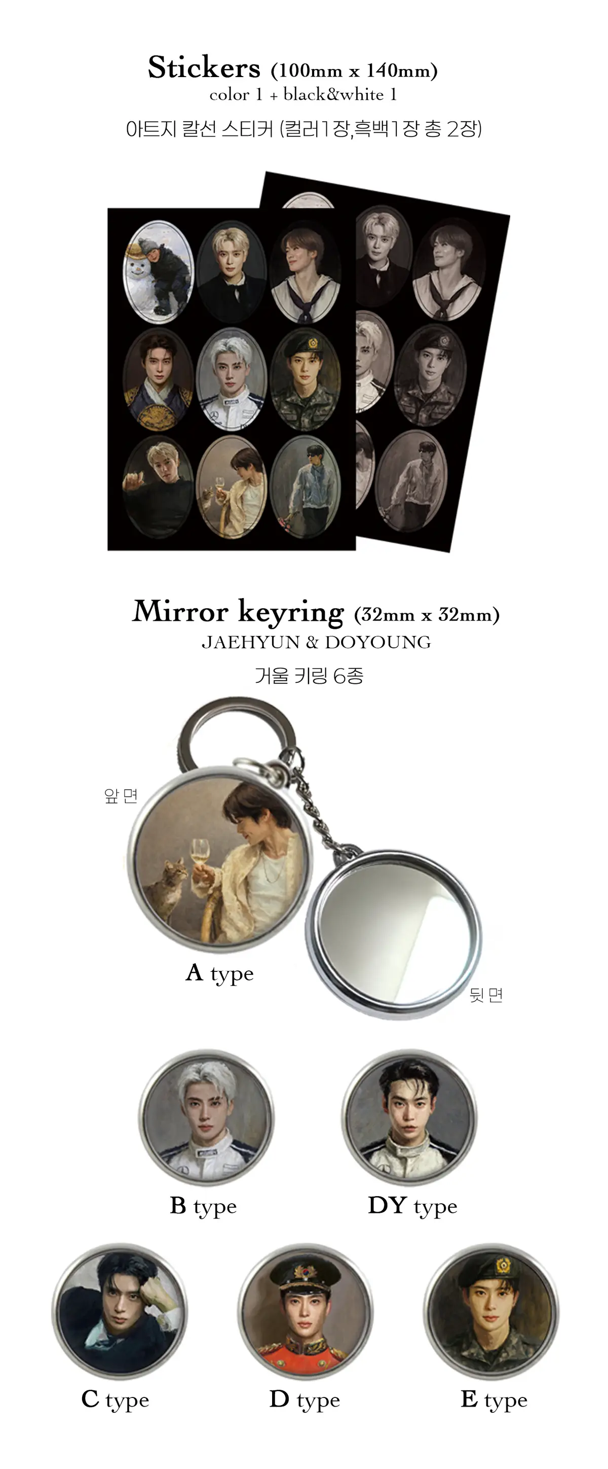 ( 특히 거울키링의 경우, 레진으로 덮여져 모니터로 보이는 색감과 다를 수 있습니다 )