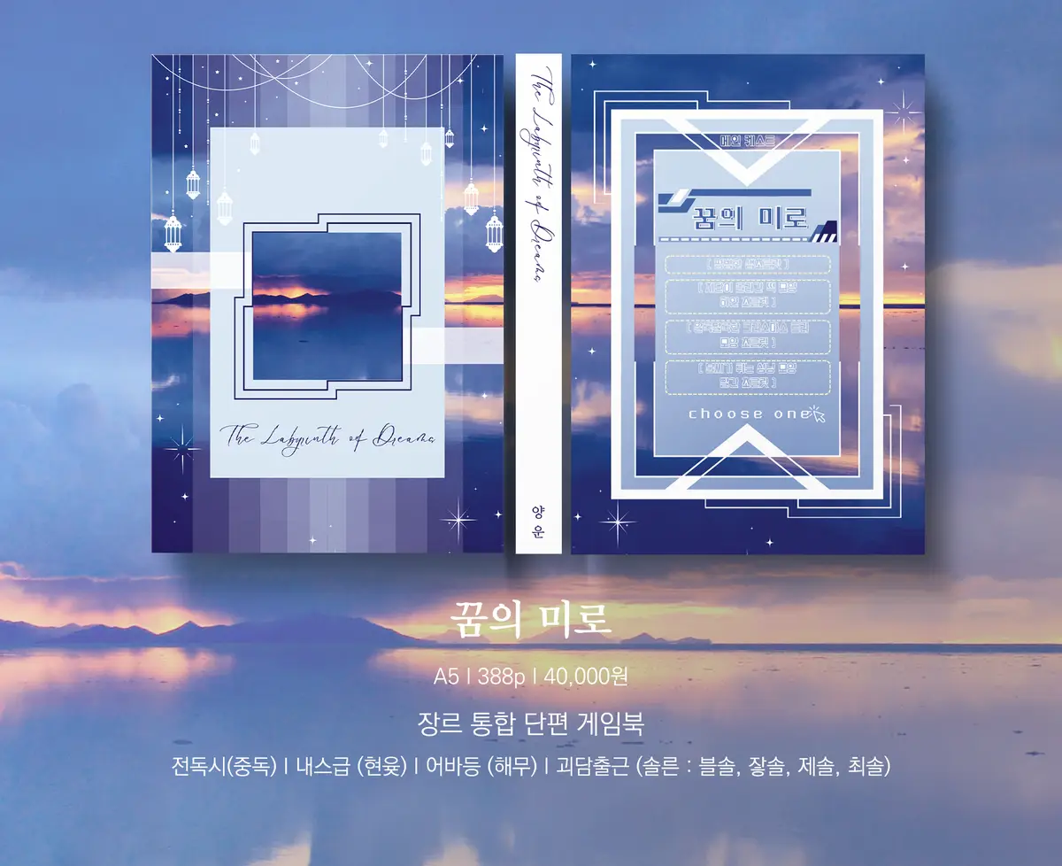 - '장르 통합 단편북'입니다. 해당 책은 '게임북' 형식을 따르고 있으며, 선택지에 따라 원하는 결과가 나오지 않을 수 있습니다. 또한 전후 페이지의 내용을 구분하고 가리기 위한 공백(빈 페이지)이 다수 존재합니다.