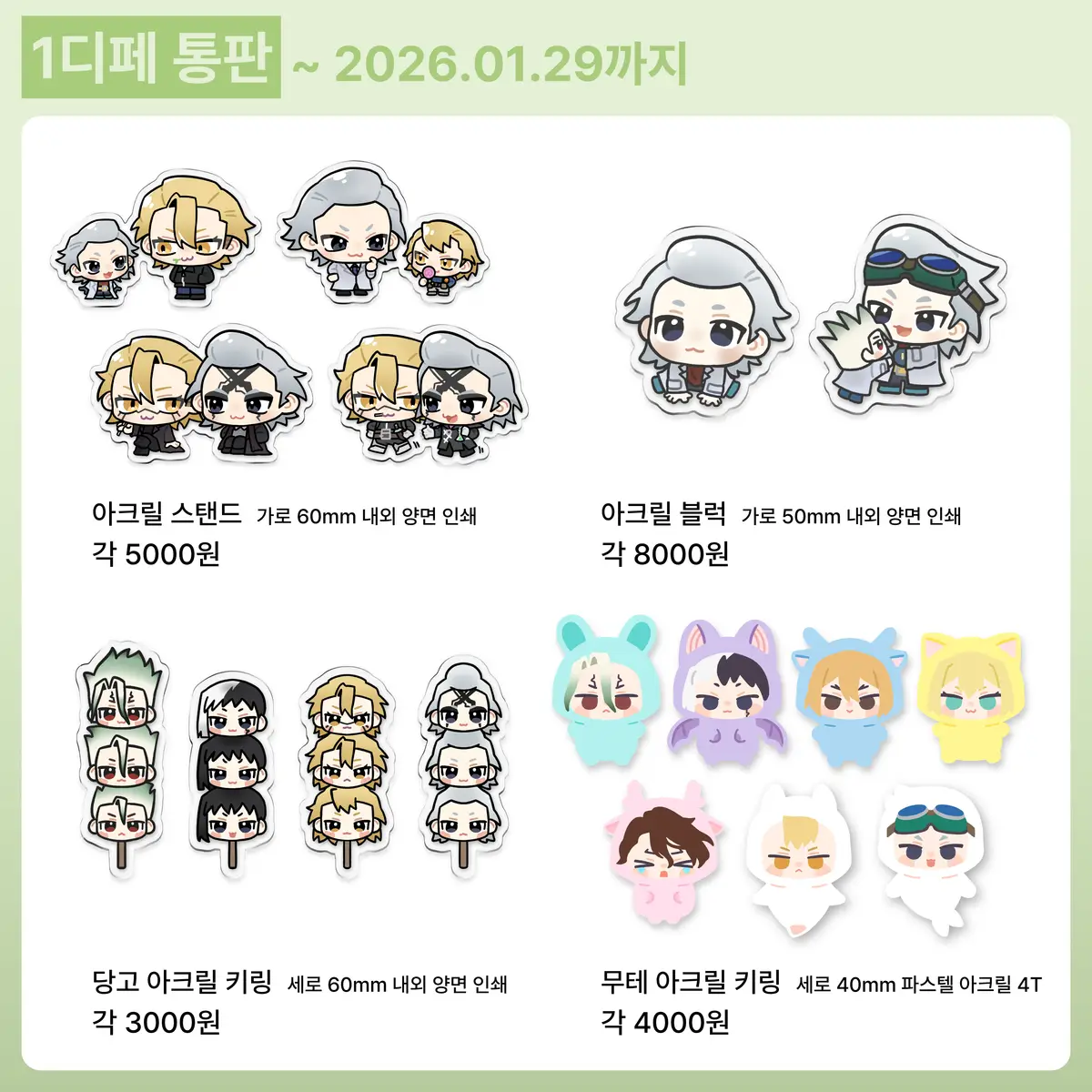 - 아크릴 굿즈 5개 이상 구매는 우체국 택배로 부탁드립니다!!