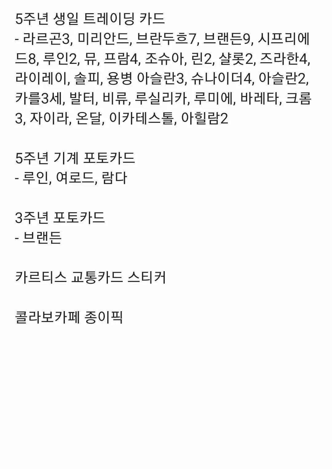 바인더 한 권에 들어가 있는 굿즈들 입니다.