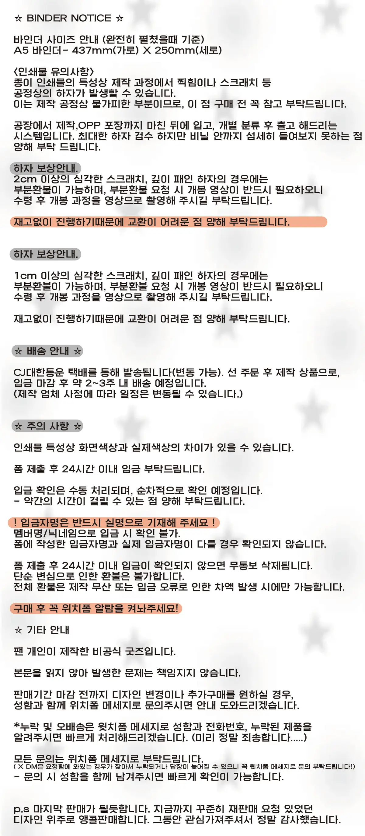 +혹시 원하시는 디자인이나 사이즈의 바인더가 있으시다면 윗치폼 메세지로 요청 부탁드립니다. 감사합니다.