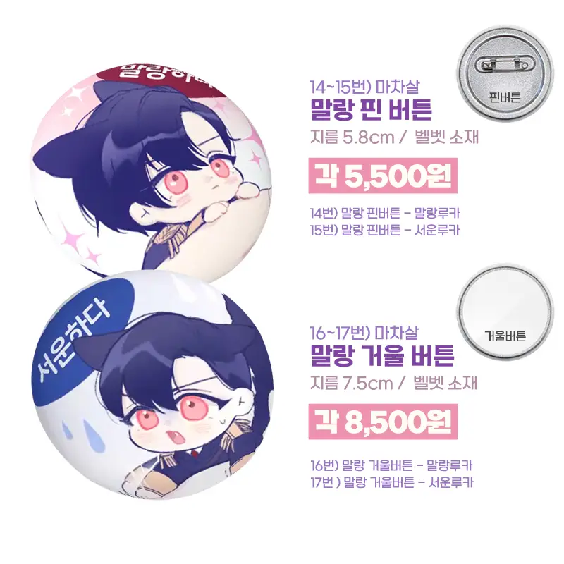 말랑 거울 버튼 - 서운루카 금액 오류로 인해 가장 아래 항목으로 옮겼습니다~ (23번 아래에 있어요!)