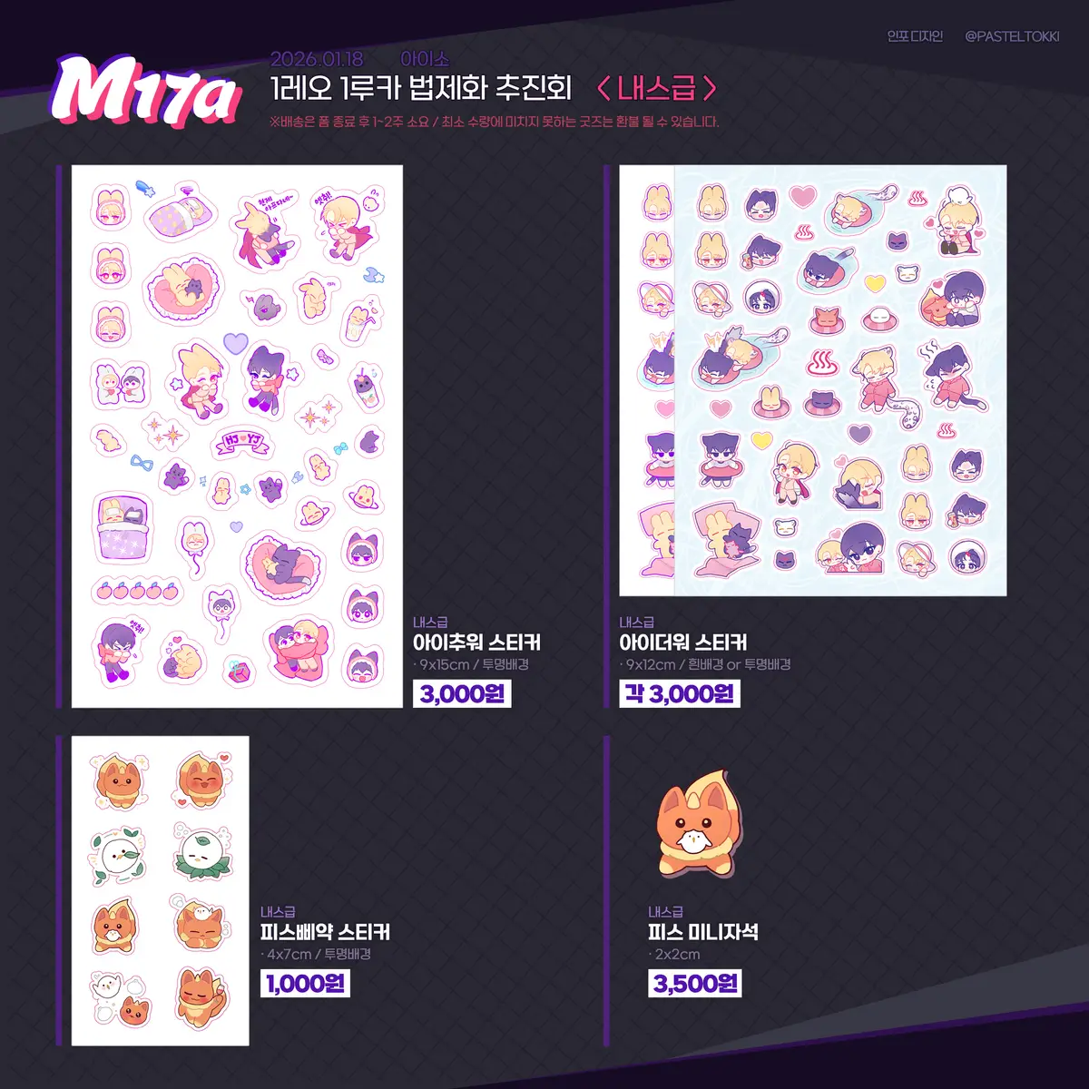 - 배송 : 폼 종료 후 1~2주 뒤 시작 예상 / 배송 시작 시 폼에 운송장 번호 기입해 드립니다. / 인쇄 수령 후 최대한 빠르게 시작합니다. 트위터 통판 타래로 공지합니다.