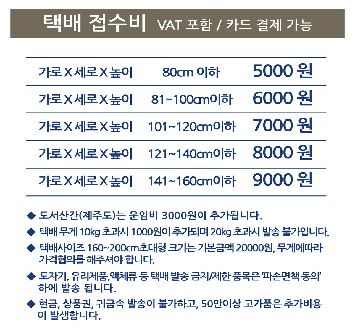 - 택배 요금표