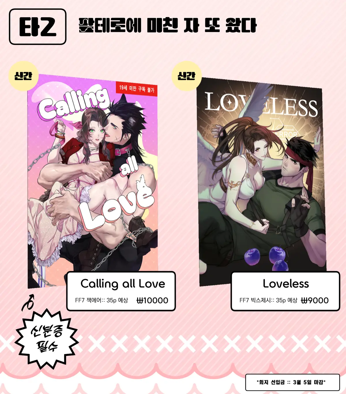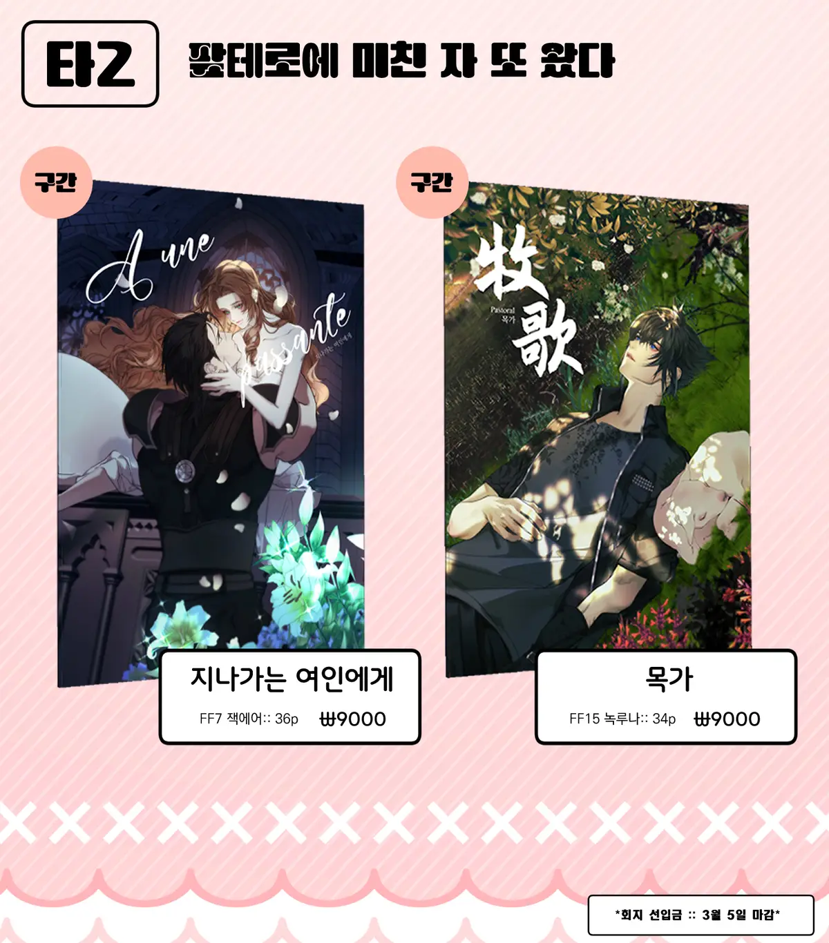 2026년 3월 14일 파이널판타지 배포전 파팡 4회에 간행될 회지 4점을 선입금 및 통판합니다.