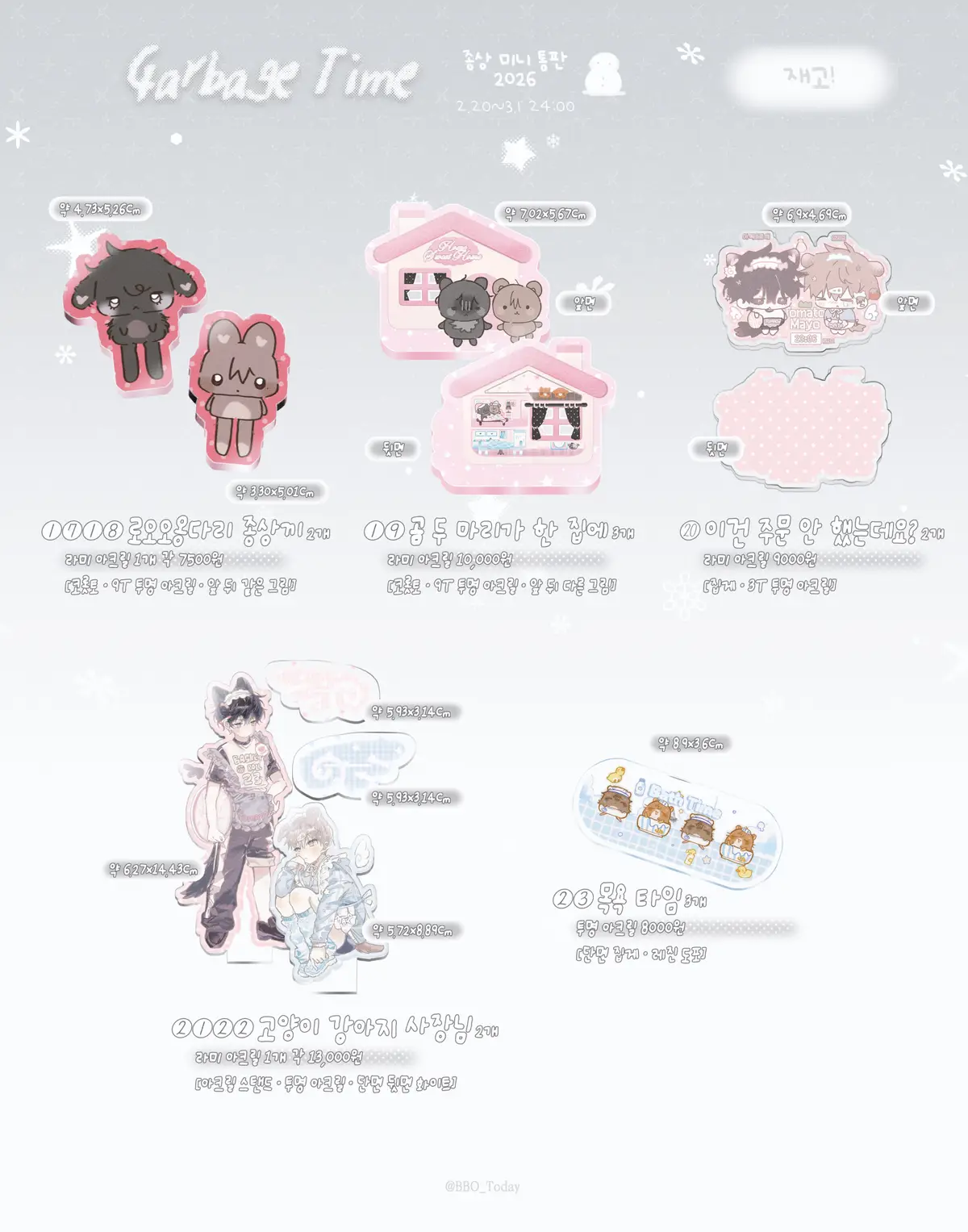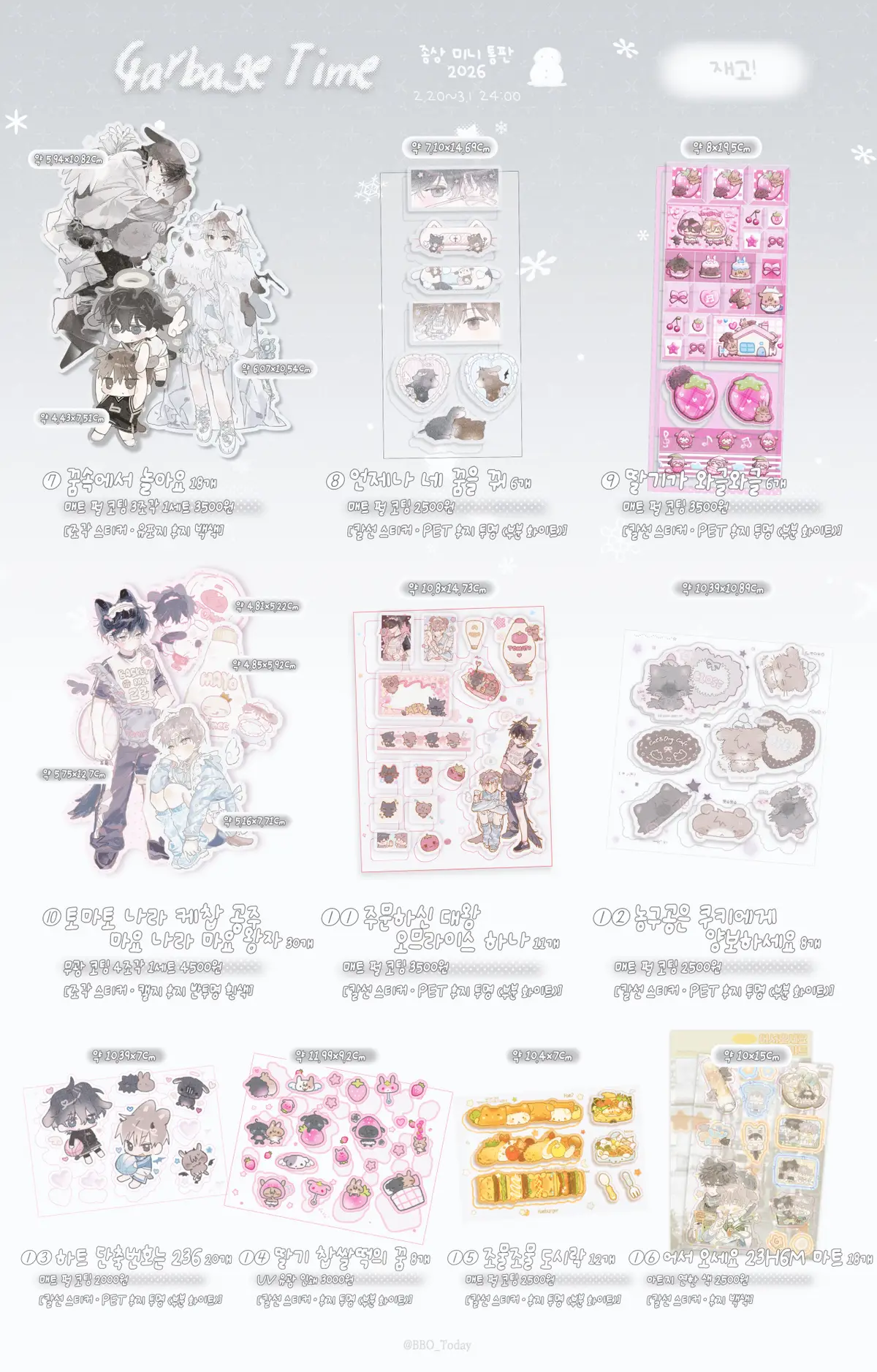 ※ 샘플 먼저 뽑을 예정이나 연휴 기간에 쌓인 물량으로 폼 마감까지 샘플 사진이 안 올라올 수 있습니다. 해당 부분도 꼭, 꼭 참고해 주세요! 이후 도착하는 대로 사진 추가해 두도록 하겠습니다.