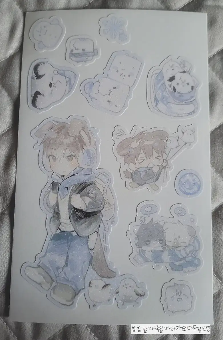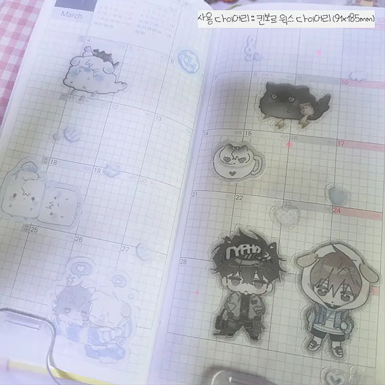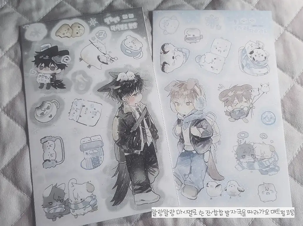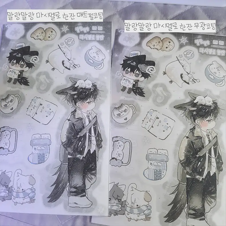 - ᔦᔧ 제작 공정 중 어쩔 수 없이 발생하는 빛 비춤으로 보이는 스크래치, 미세한 스크래치, 작은 잉크 튐 귀도리 부분의 긁힘과 같이 업체에 안내되어 있는 미세한 하자들은 파본에 해당하지 않습니다. 특히 코팅이 들어간 스티커류나 포토카드는 공정상 스크래치(긁힘)가 불가피하여 존재하니 관련해 민감하시다면 구매를 고려해 주세요.