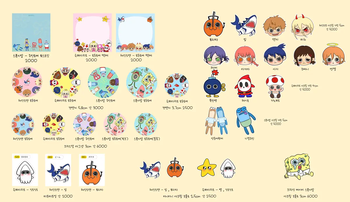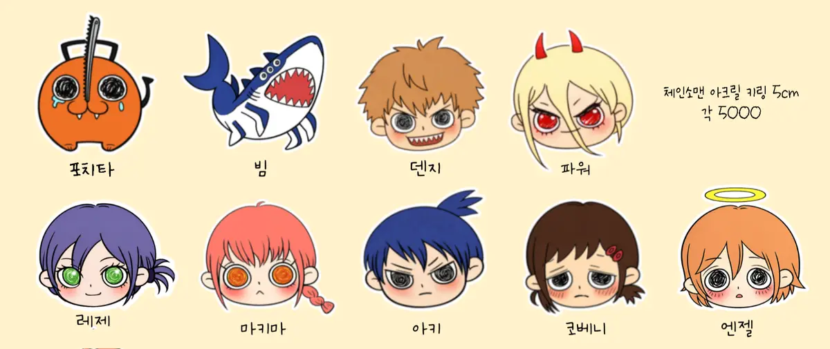 ‼️체인소맨 일부 캐릭터 아크릴 키링이 샘플 미도착하여 실사에 빠져있습니다.이미지 사진 참고해주세요.