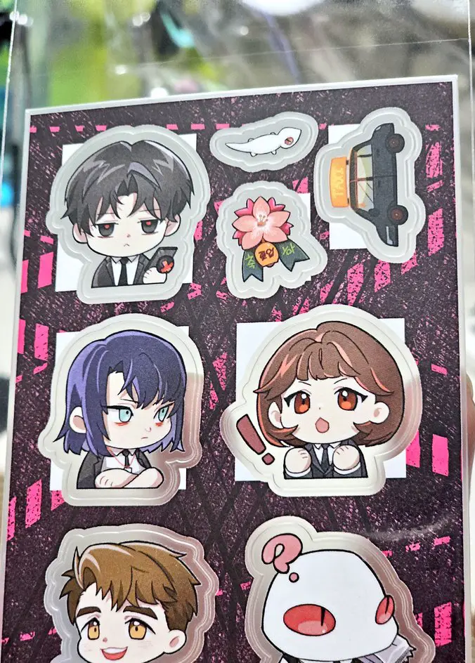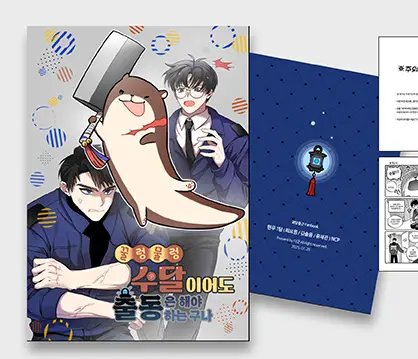 (재판 굿즈 = 꿀물수달회지, 말랑재난 투명스티커, 귀여워도 출근 스티커A/B, 3단 합체 현무팀 아크릴블럭)