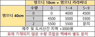 - 구매 수량별 배송비가 상이하며, 오입금 시 DM을 통해 개별 연락드립니다.