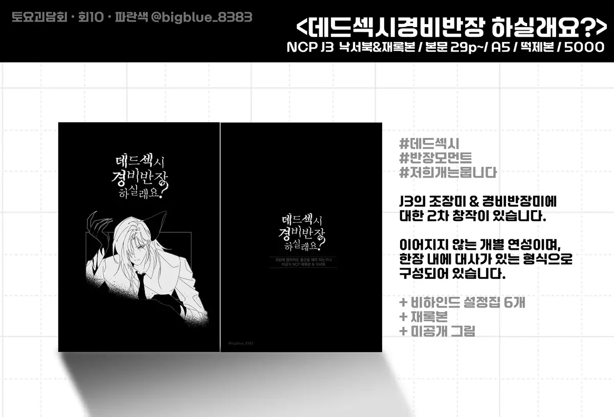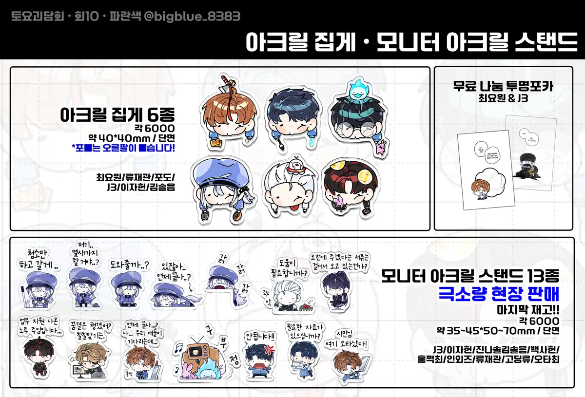 모든 문의사항은 트위터 계정(파란색/@bigblue_8383)의 DM 또는 스핀으로 넣어주세요.