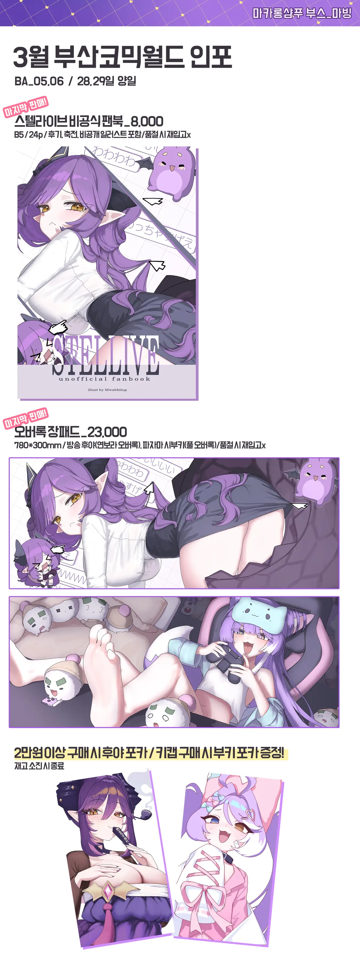 3월에 열리는 부산코믹월드 마카롱 샴푸 부스에서 판매하는 스텔라이브 비공식 굿즈 선입금폼 입니다🥺✨️