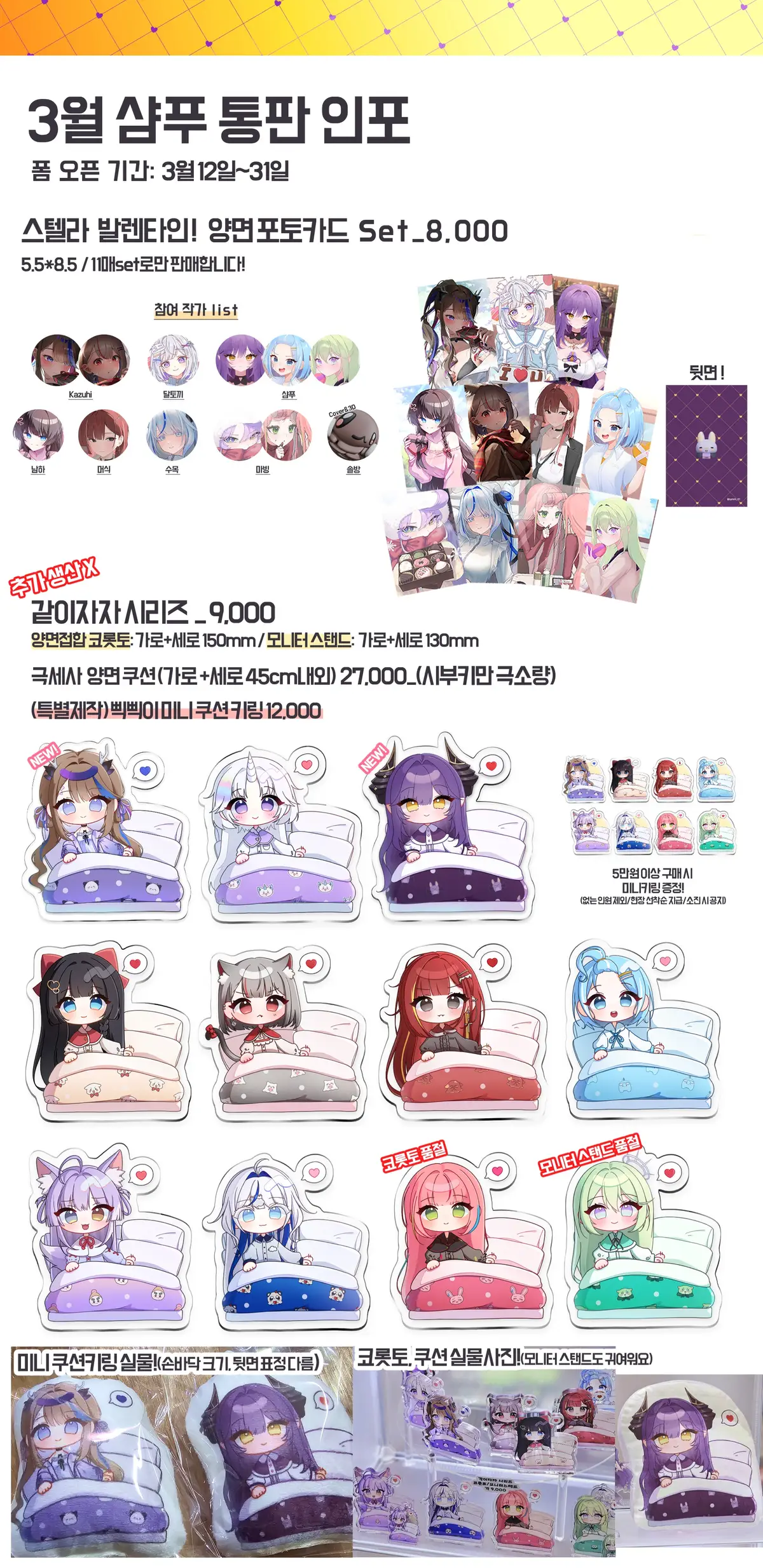 같이자자 시리즈 굿즈 구매를 희망하시는 분께서는 윗치폼 메시지로 먼저 문의주신 후 구매 시 질문에 구매멤버를 적어주시면 감사하겠습니다!🙏