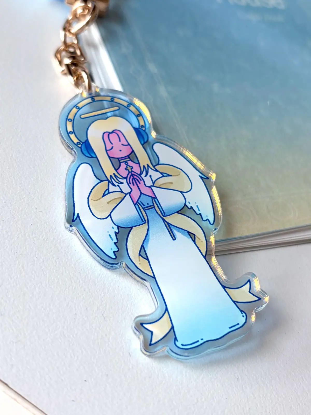 천사 키링: 하프미러(블루/골드), 30*70mm