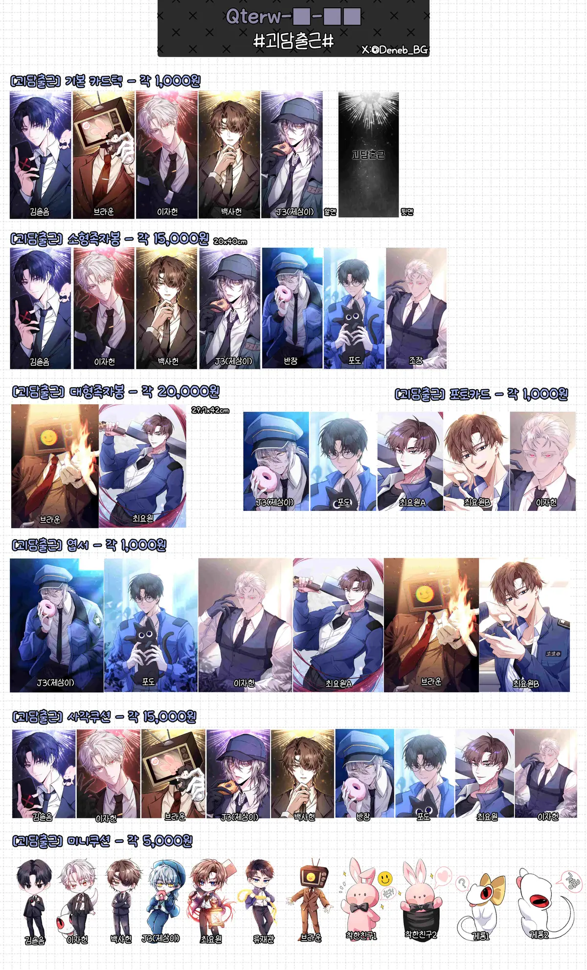 **현재 쿠션 재고가 몇 개 없어서 괴담출근 미니키링을 제외하고는 대형 쿠션은 판매 하고 있지 않습니다ㅜㅜ**
