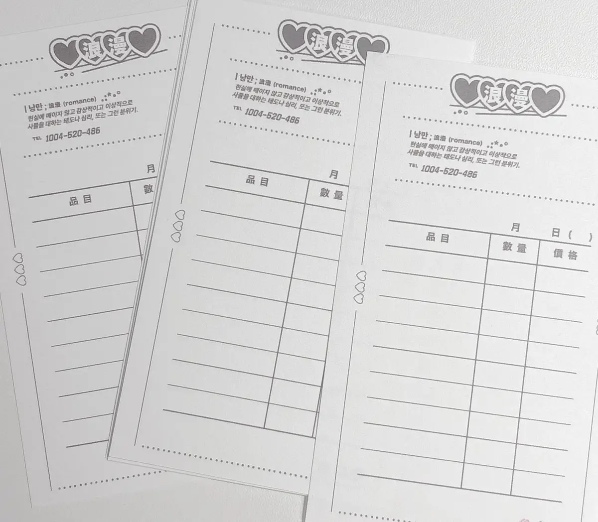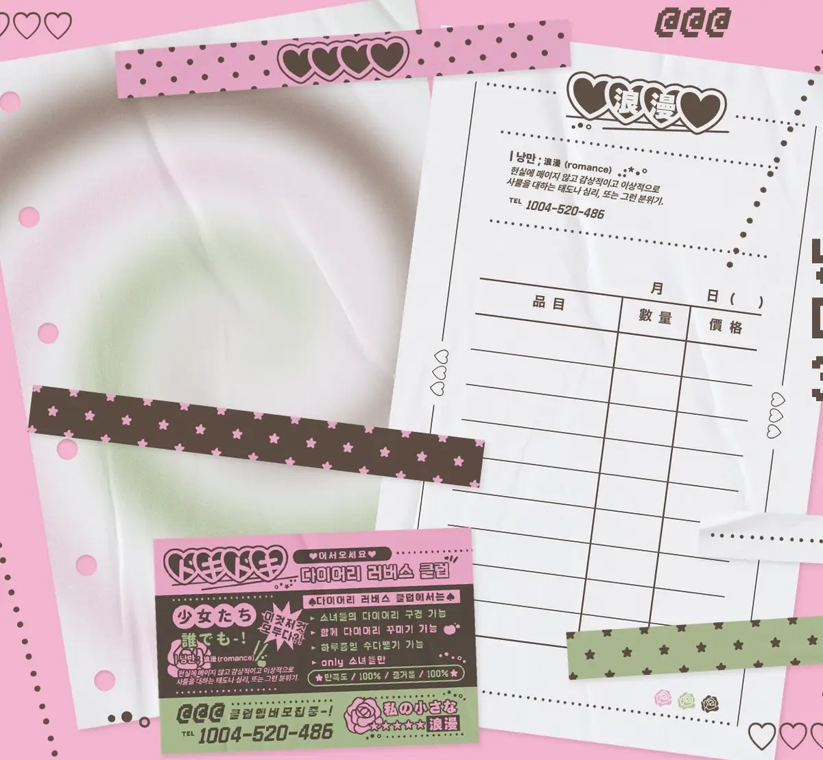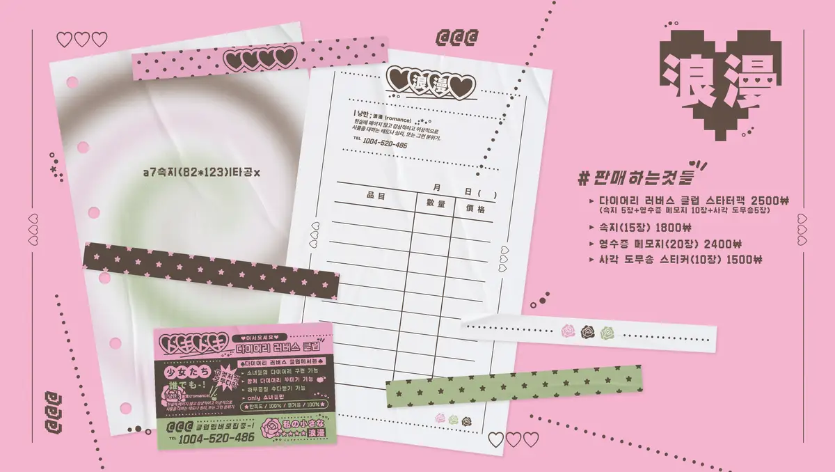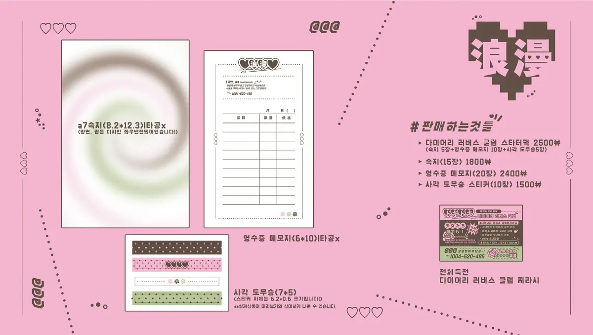 _다이어리 러버스 클럽 스타터팩(속지 5장, 영수증 메모지 10장, 사각 도무송 5장) - 2500원