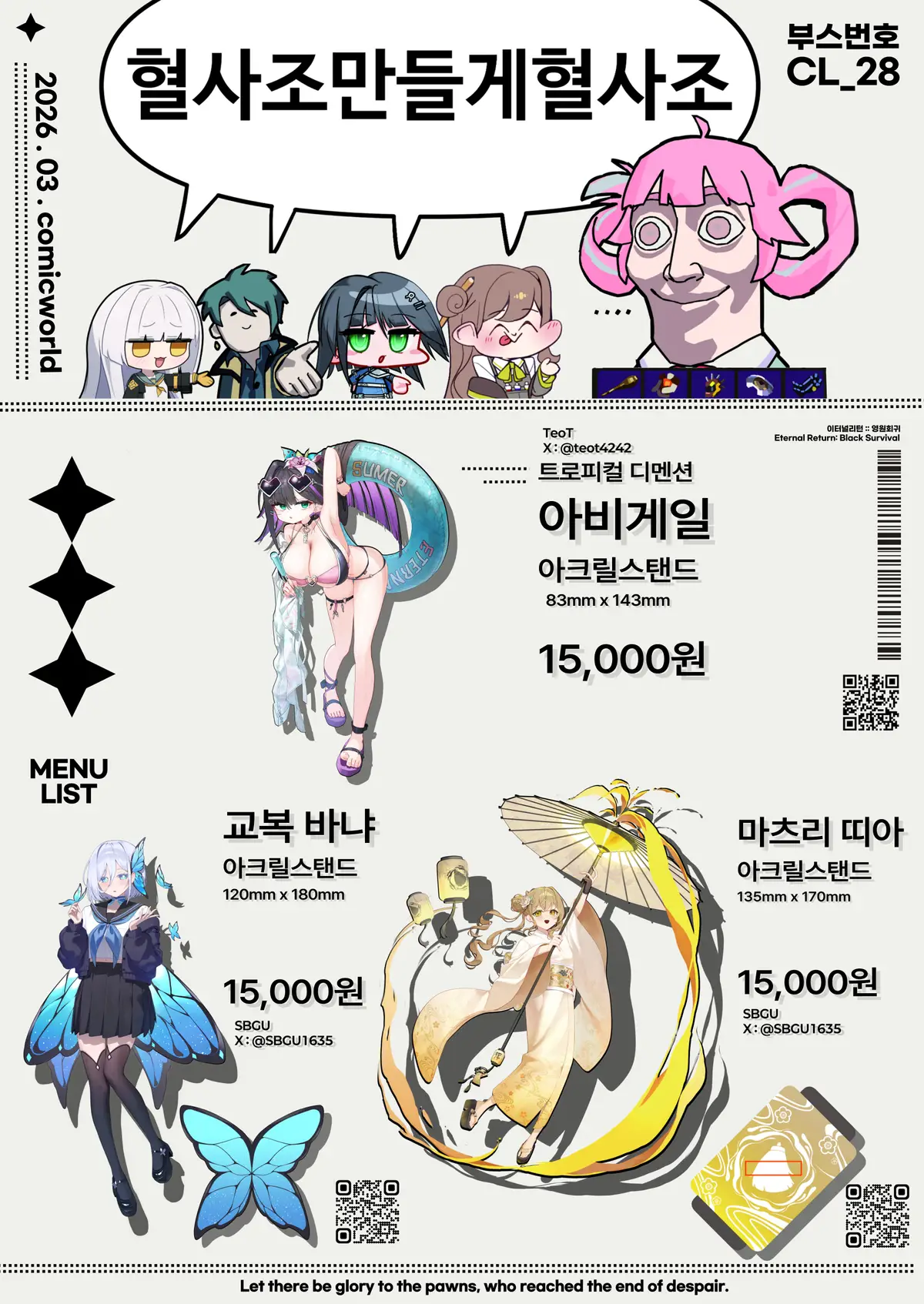3월 코믹월드에서 진행한 이터널 리턴 부스 '혈사조만들게혈사조' 통판폼입니다!