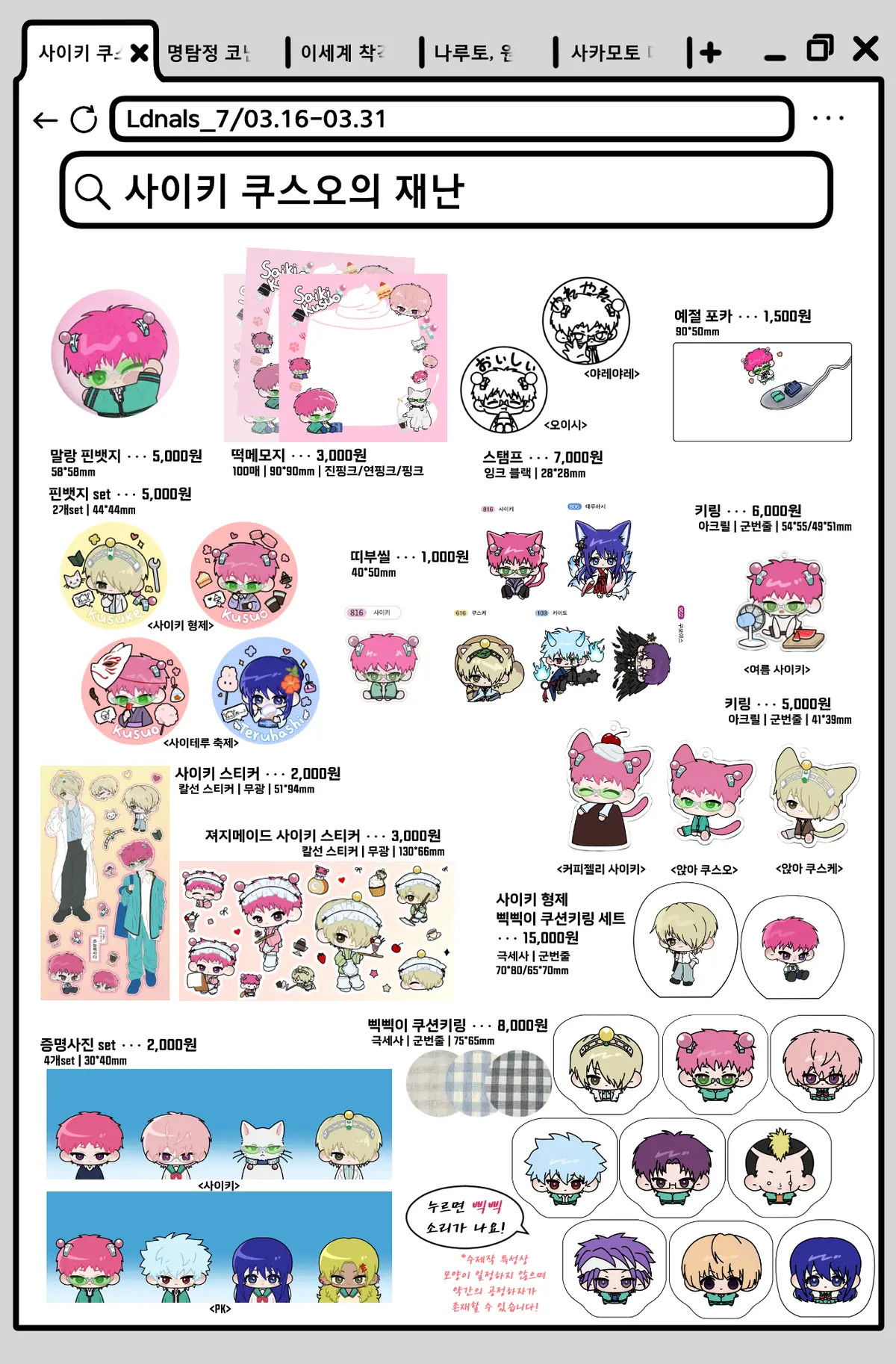 사이키 떡메모지의 경우는 수량이 정해져 있습니다!