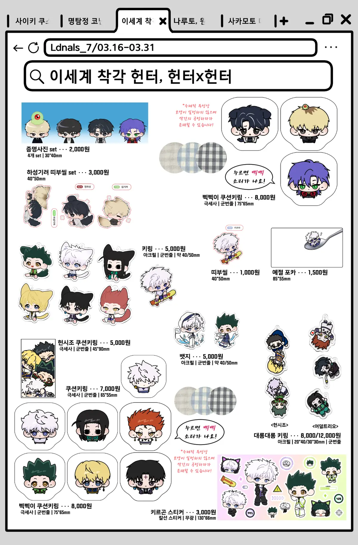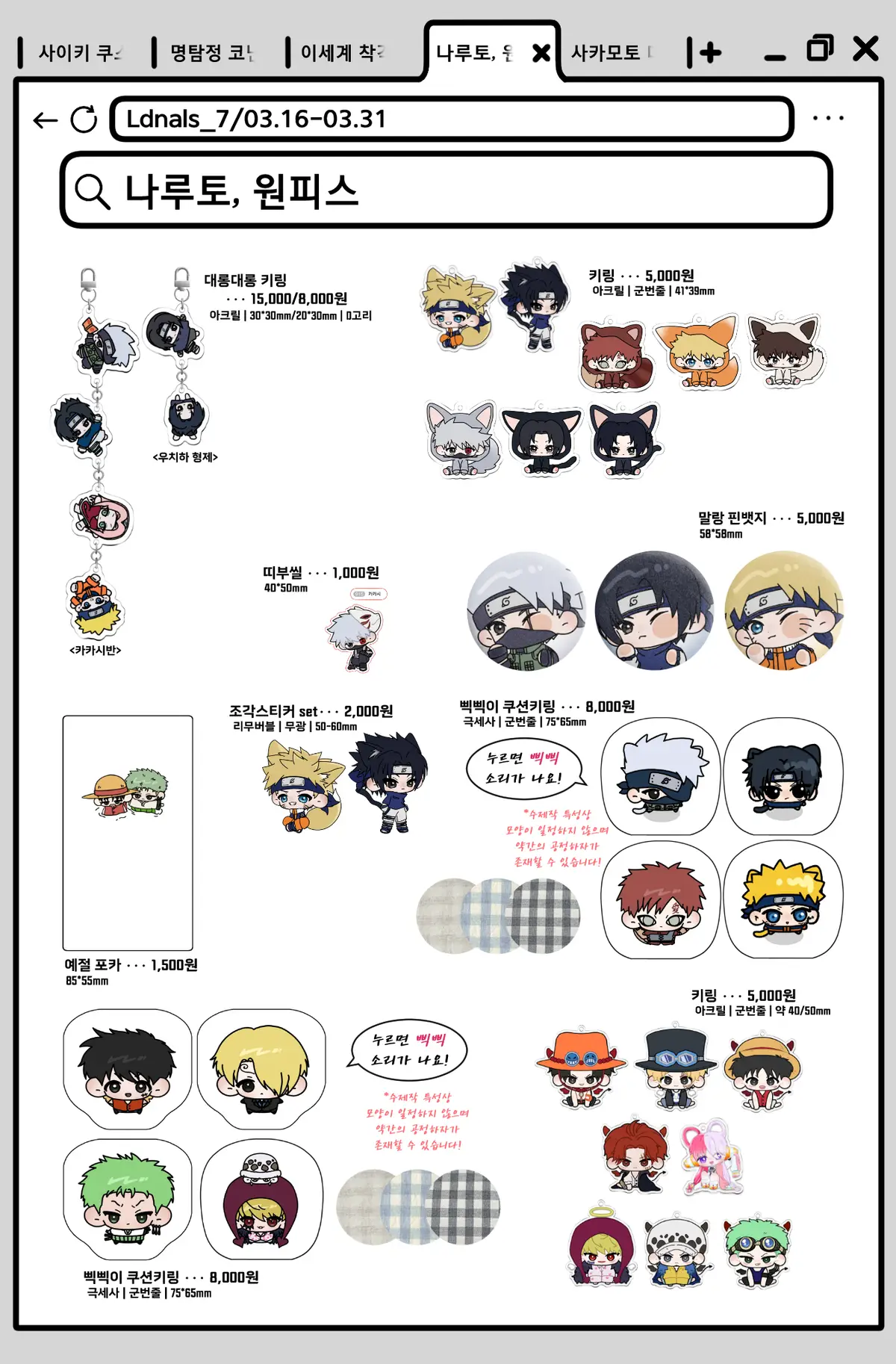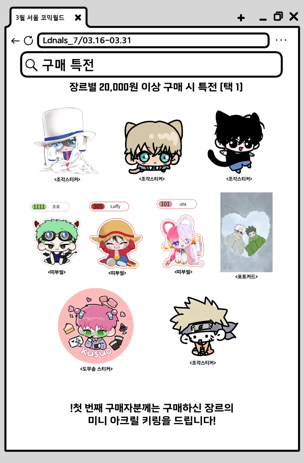 (ex. 나루토 조각 스티커)