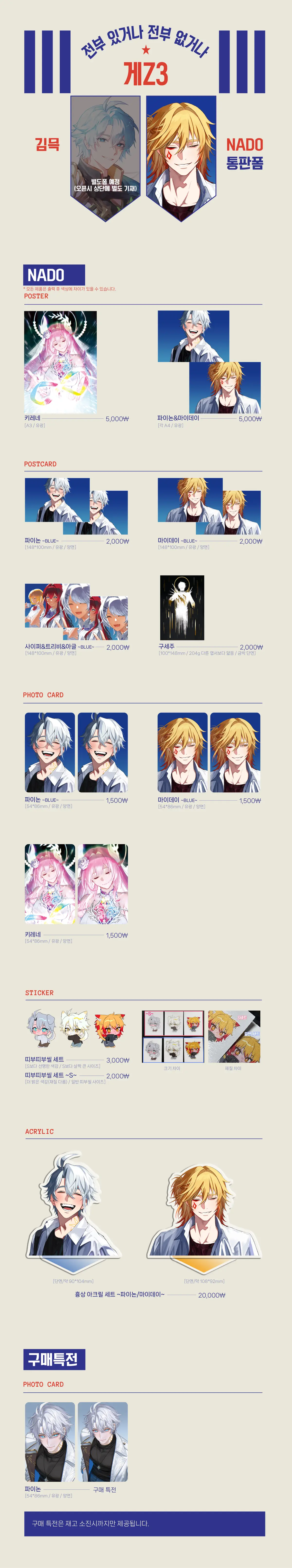 🌟통판의 경우 재고 관리를 별도로 하고 있기에 참여진별로 폼 및 특전이 구분되어 있습니다.