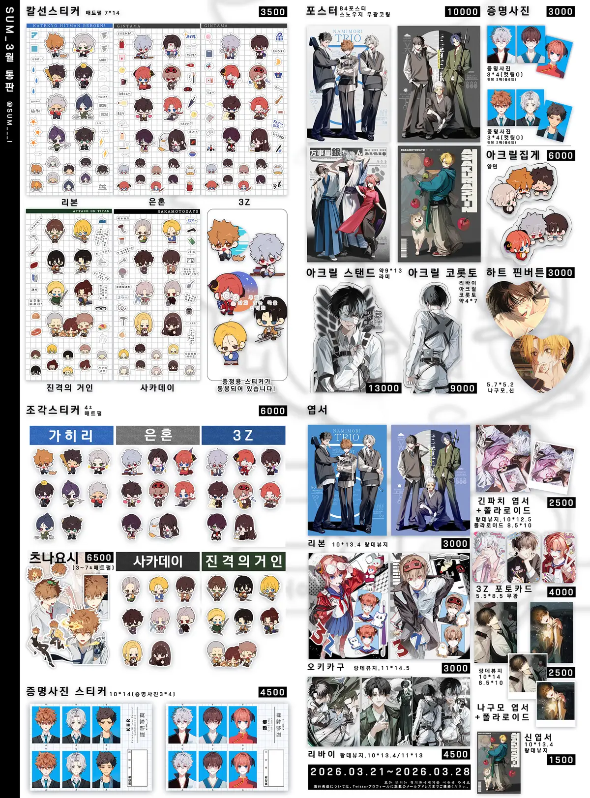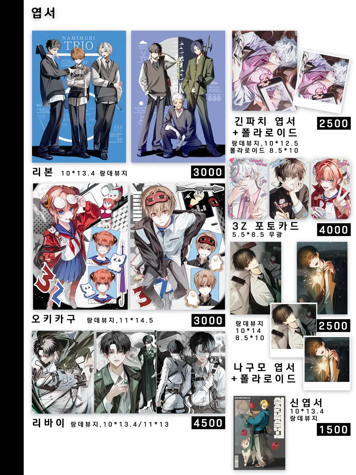3만원 이상 구매자 전원 증정 택1 아크릴 키링 (히바리/오키타/신/리바이)