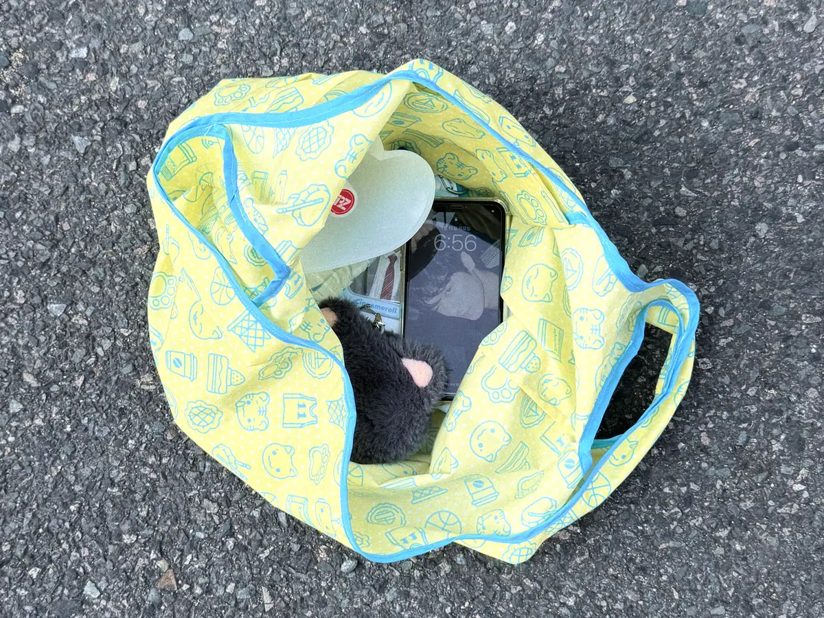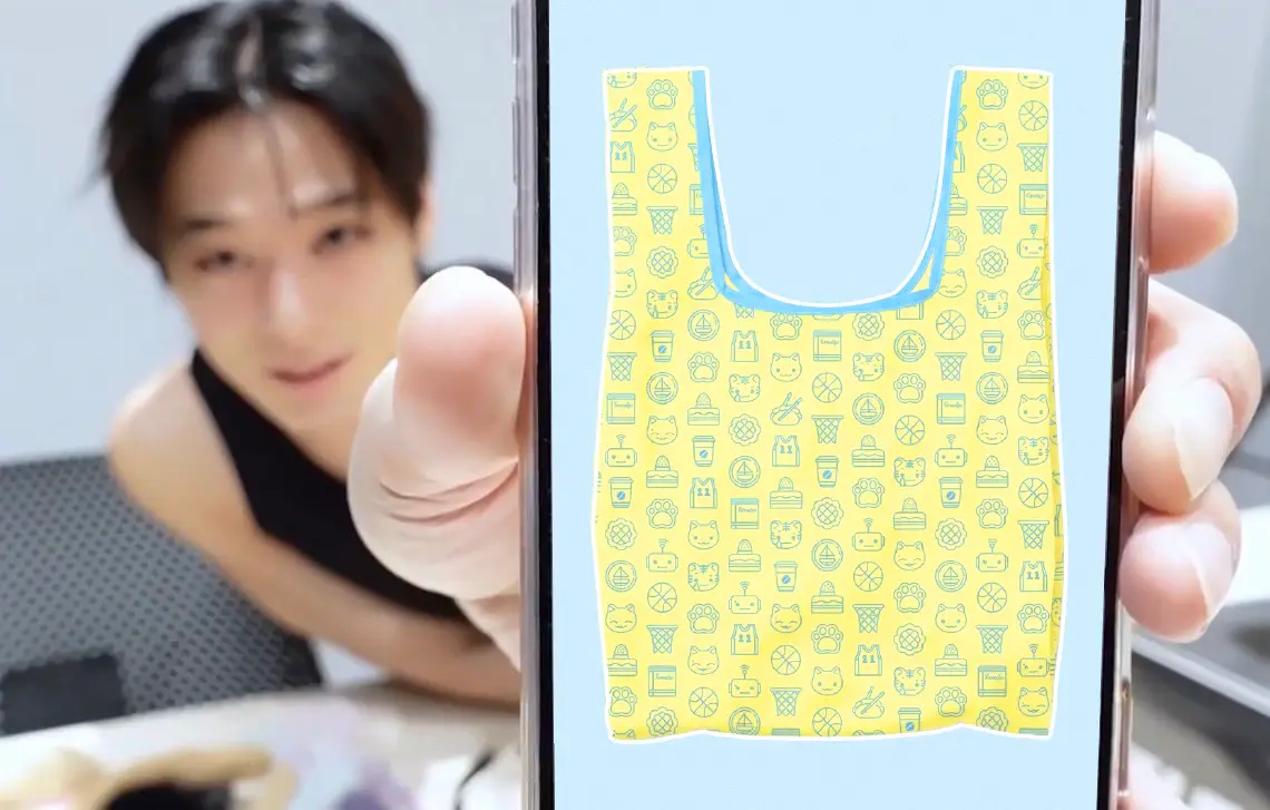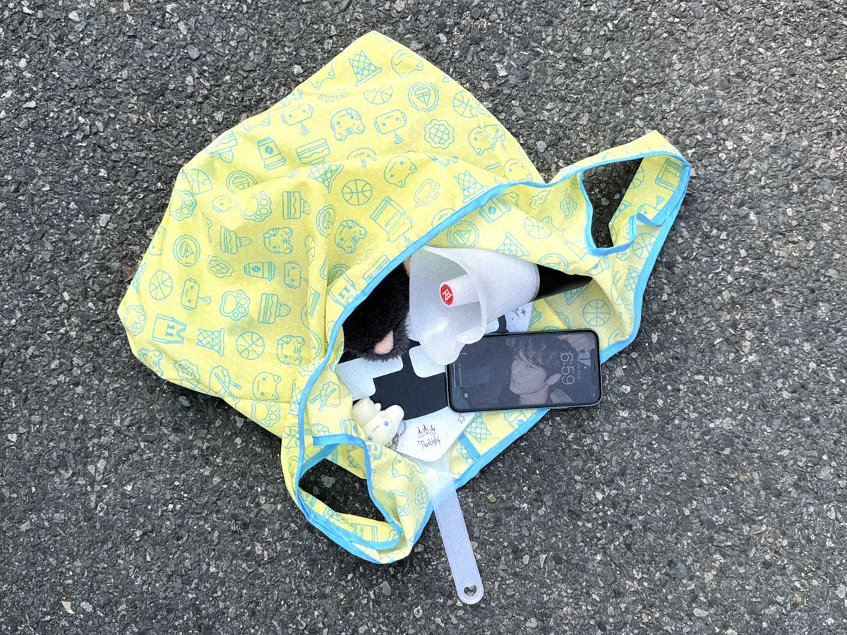 장바구니에 주머니가 함께 부착되어 있습니다.