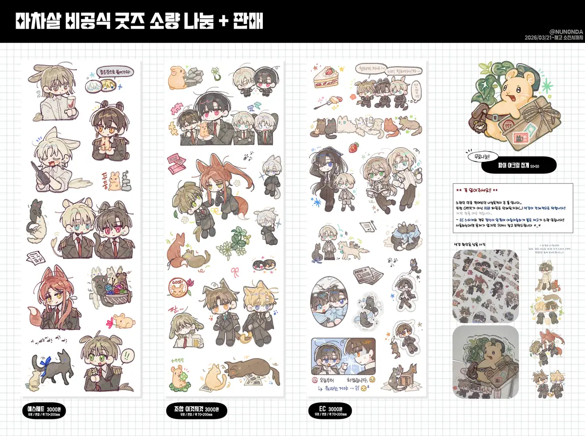 ** EC 스티커의 경우 칼선이 왼쪽에 아슬아슬하게 붙은 재고가 소량 있습니다!! 사용하는 데엔 문제가 없지만 구매 시 참고 부탁드립니다 ㅠ_ㅠ 🙇♀️