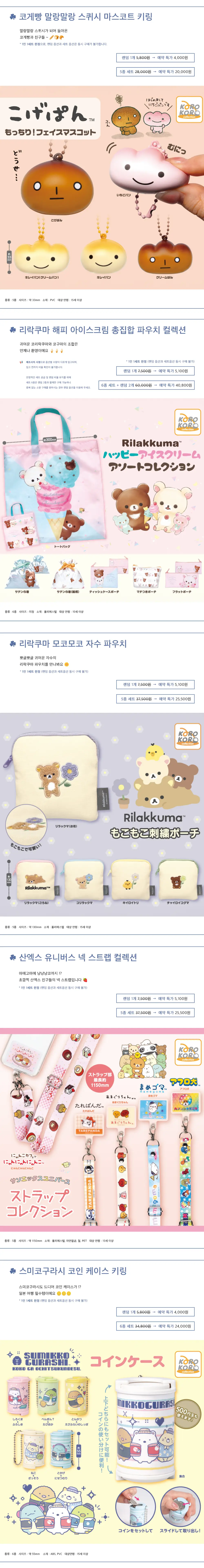 14. 리락쿠마 해피 아이스크림 총집합 파우치 컬렉션 6종 세트 + 랜덤 2개 (40,800원/1개)