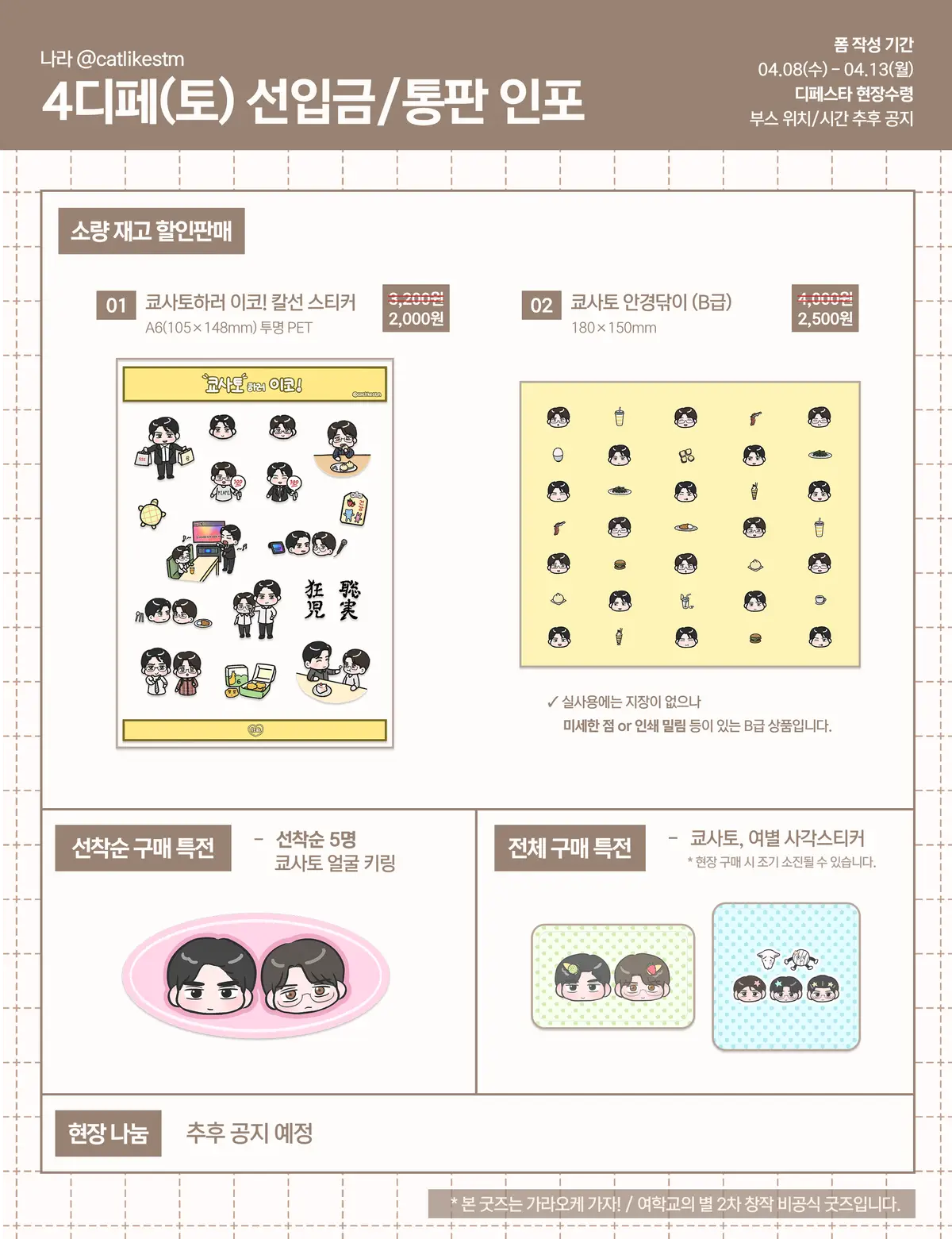 부스 위치 및 수령가능시간은 추후 업데이트할 예정입니다.