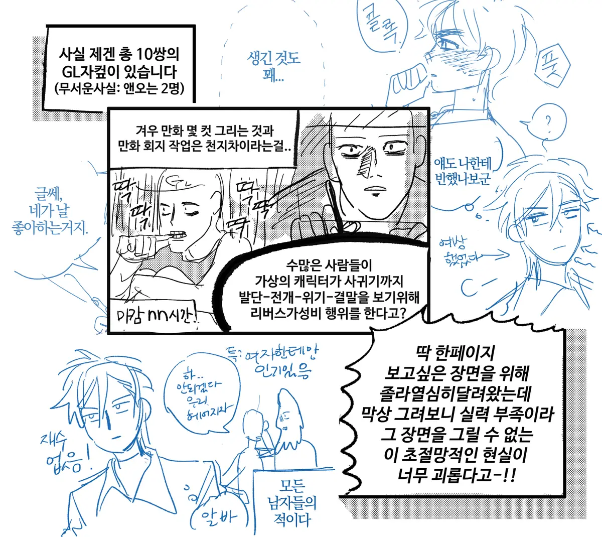 ※파란색 그림은 만화 러프입니다.(현재 작업중)
