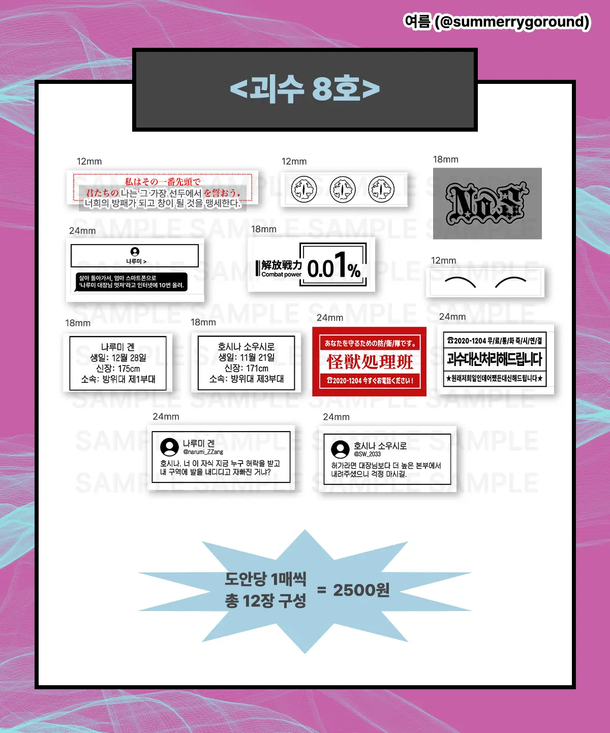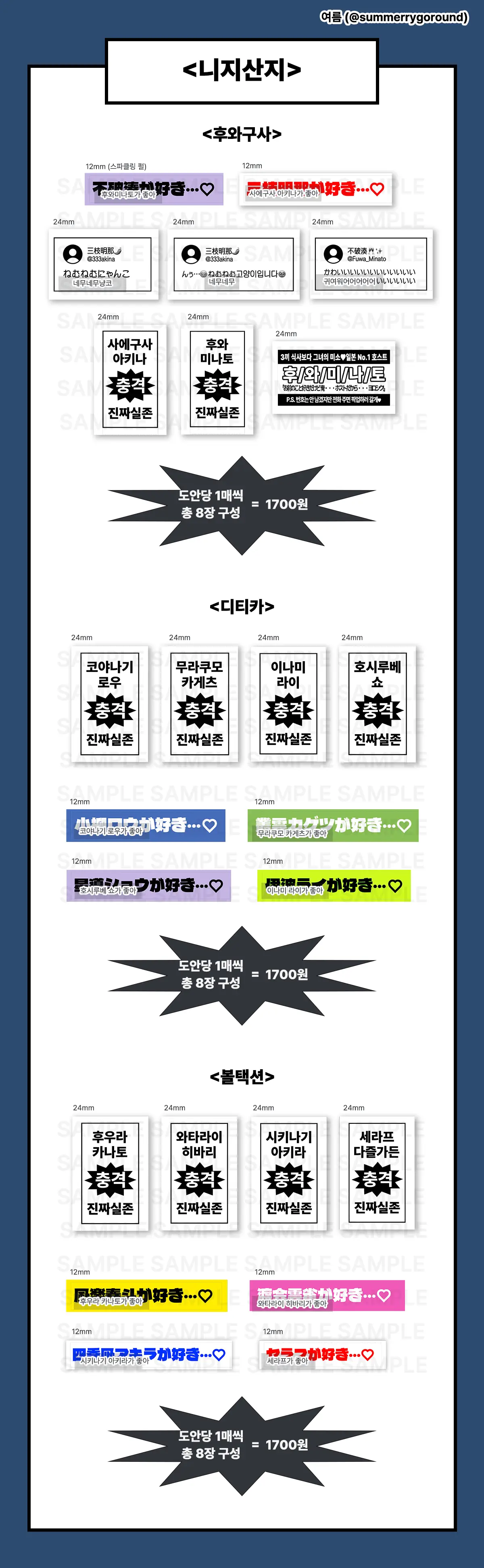 - 추가 구매를 원하실 경우 윗치폼 메시지 혹은 트위터 계정 @summerrygoround의 스핀스핀으로 연락 부탁드립니다.