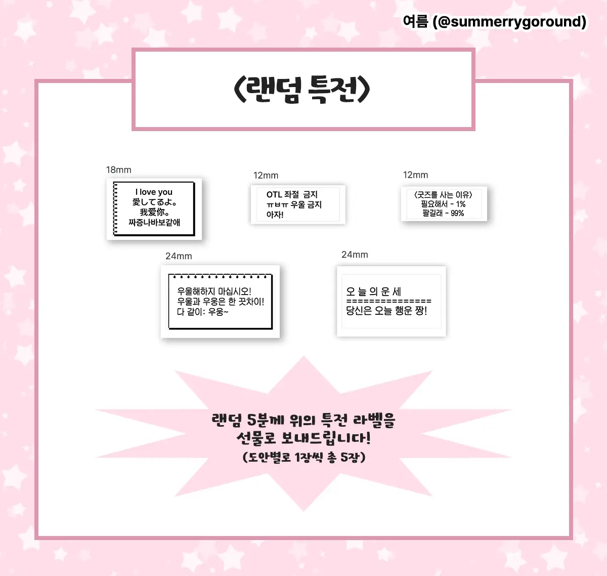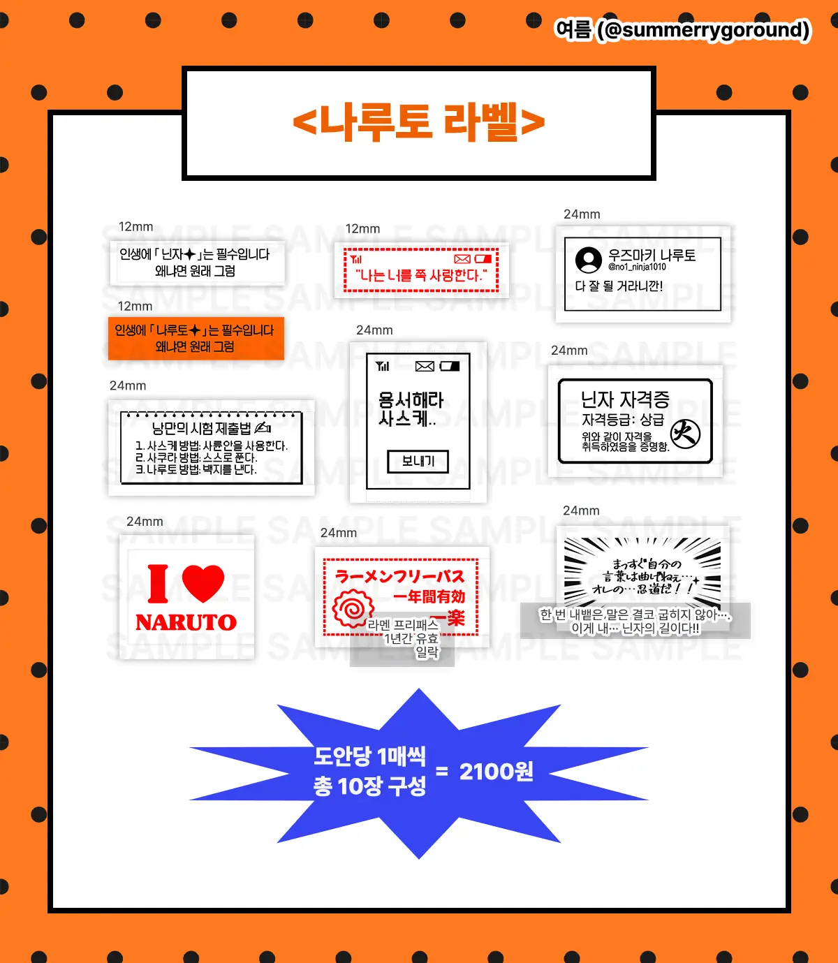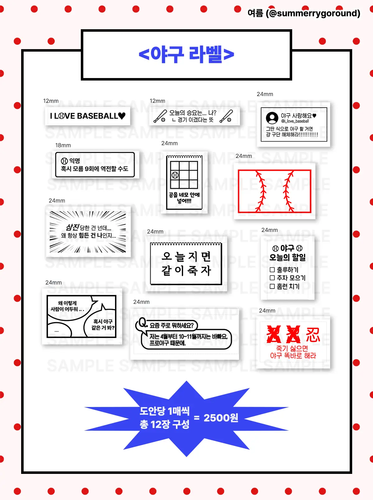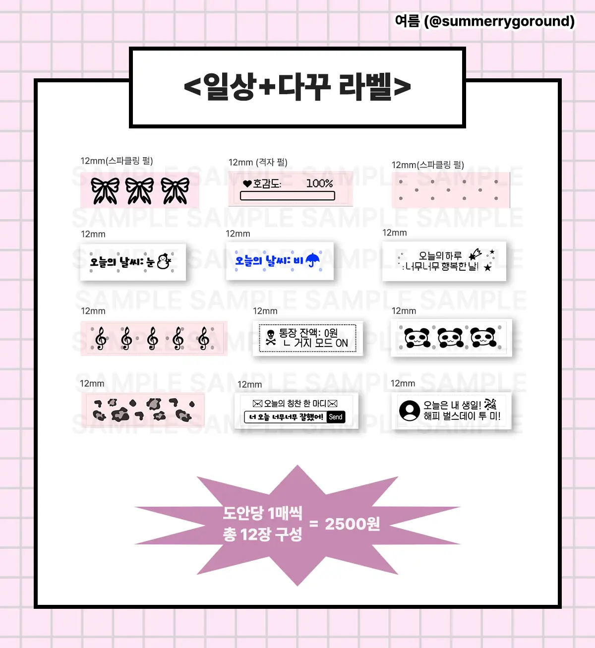 ( 상세 페이지에 있는 도안은 실제 라벨을 촬영한 것이 아닌 프로그램 내의 샘플로 실제 라벨과 색감, 반짝이 유무 등의 차이가 있을 수 있습니다. )