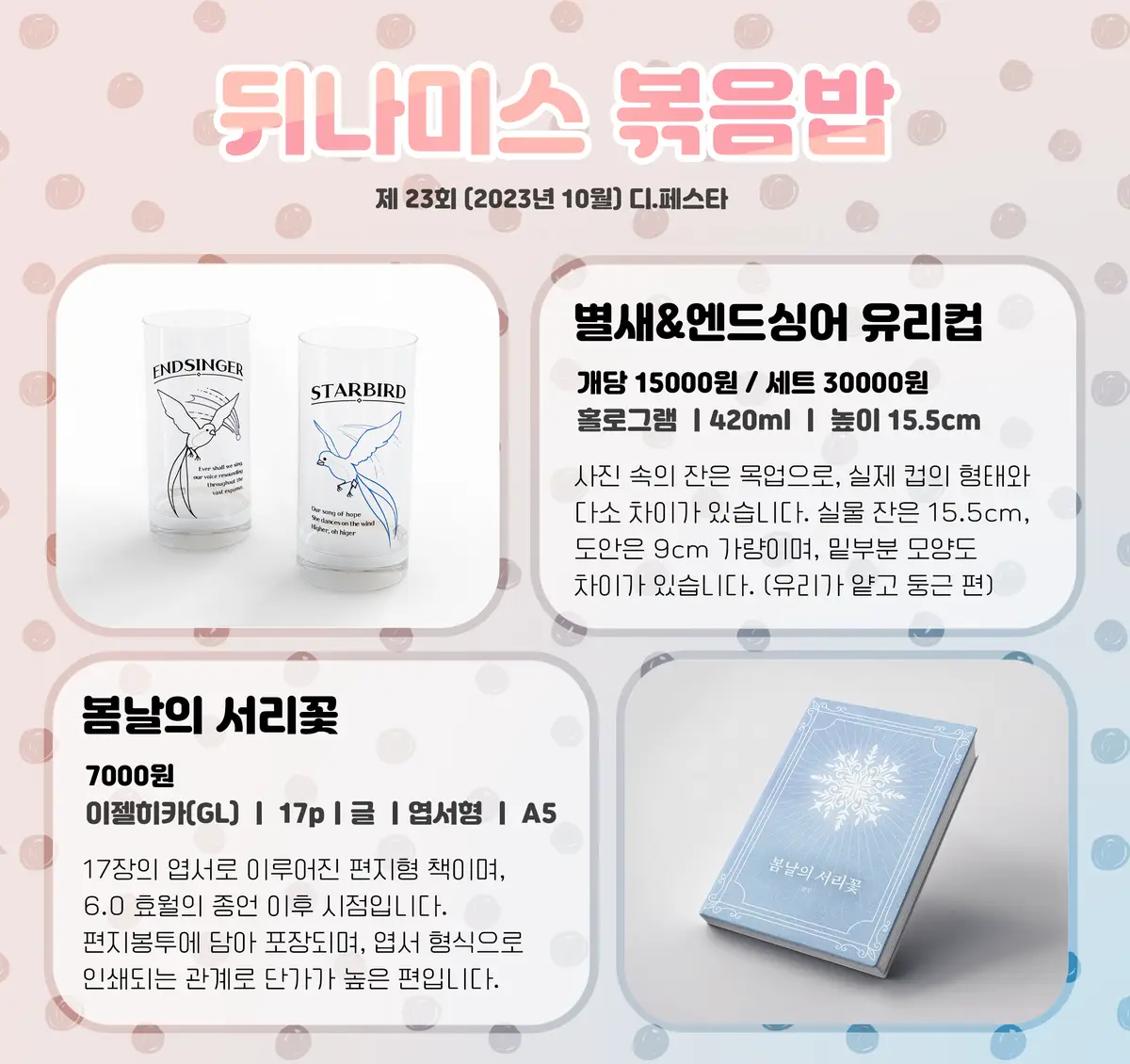 책 <봄날의 서리꽃>의 경우, 인쇄 방법이 변경될 경우(미색지 낱장인쇄) 단가가 낮아질 수 있으며, 이 경우 부분적으로 환불해 드립니다.