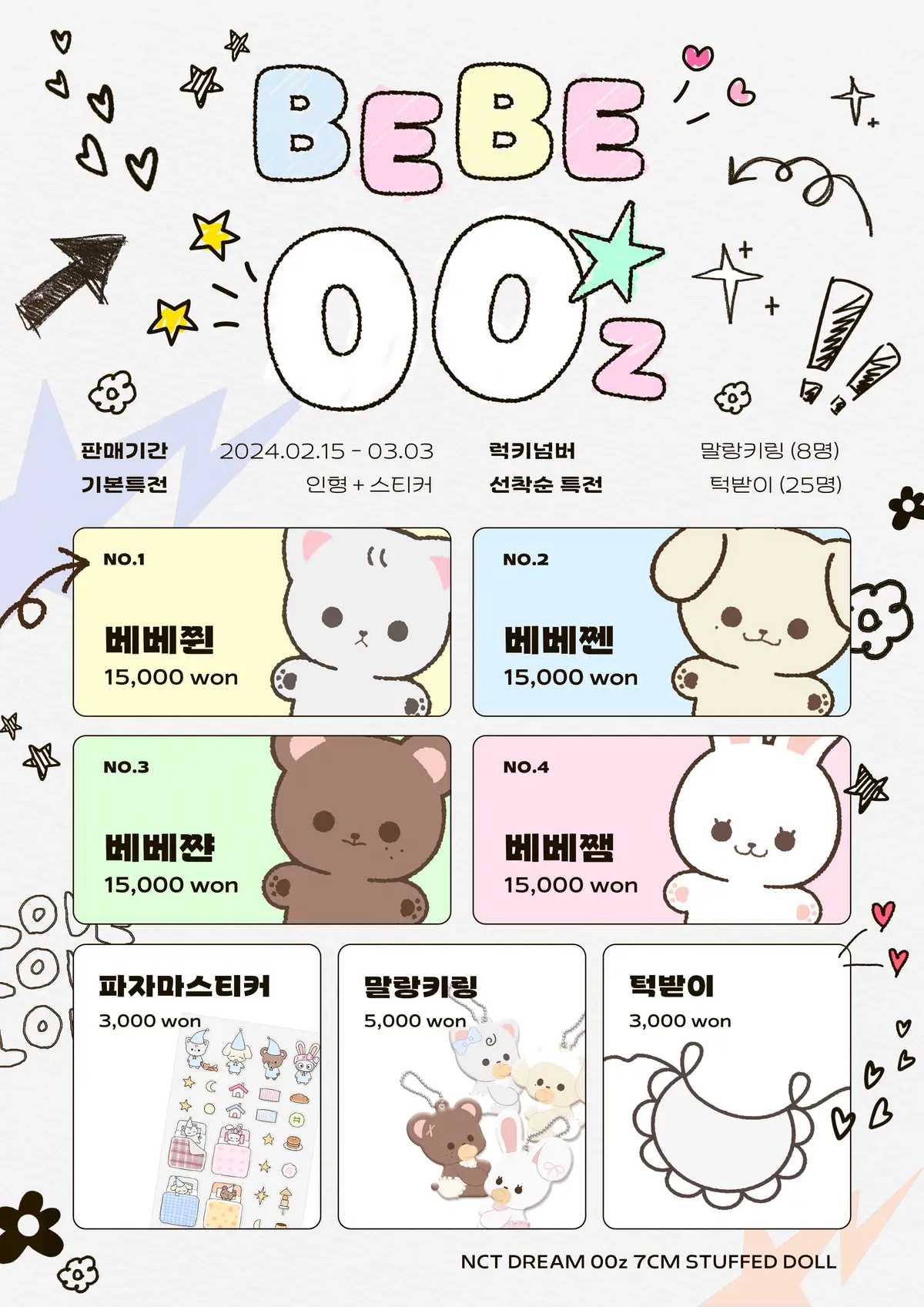 베베쮠 2, 베베쩬 3, 베베쨘 4, 베베쨈 5 = 인형 14개 = 4,000원